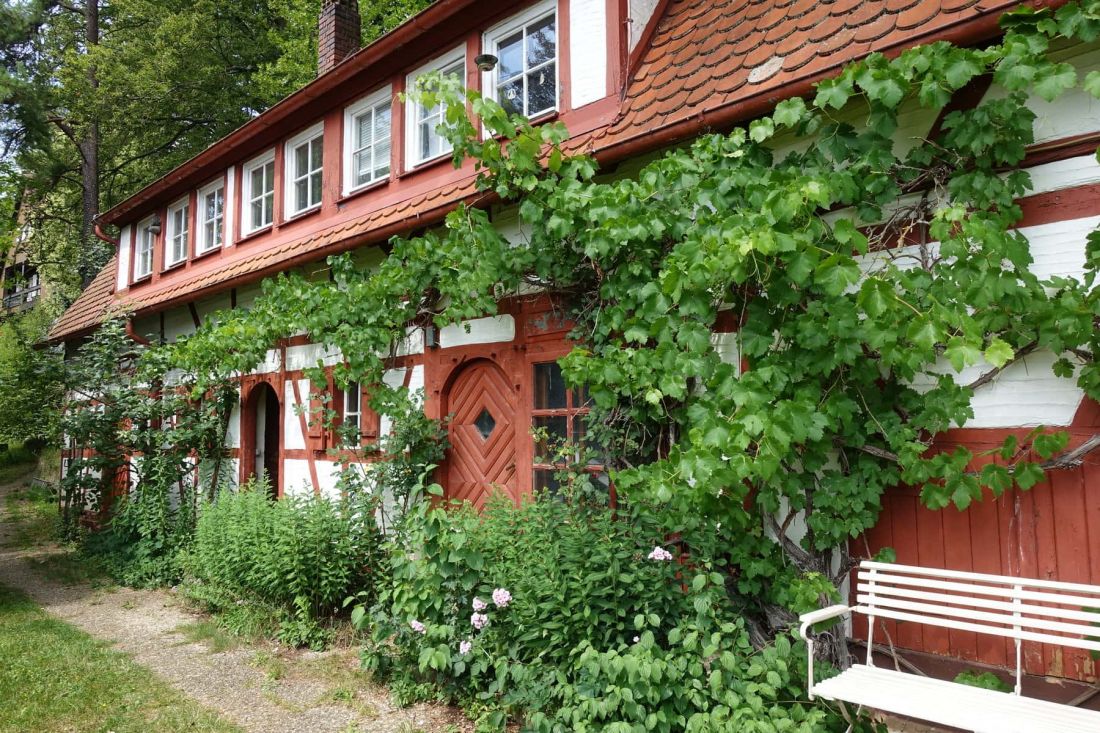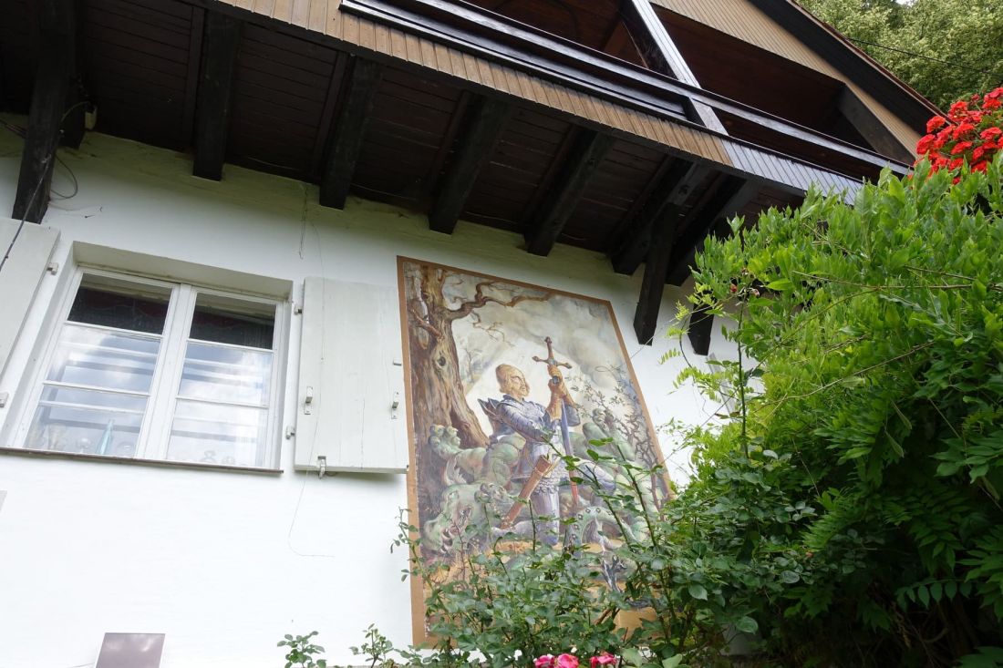 Die Außenfassade des 1935 entstandenen Wohnhauses wird durch eine Fassadenmalerei, welche den Heiligen St. Georg den Drachentöter abbildet, geschmückt. Tatsächlich definiert sich dieses Immobilienangebot jedoch nicht nur durch einen besonderen Baustil und die idyllische Lage in der Hersbrucker Alb, sondern auch durch das vorhandene Raumangebot, welches sich aus zwei vorhandenen Gebäuden ergibt sowie ein vielseitig nutzbares großes Grundstück mit Schwimmteich.