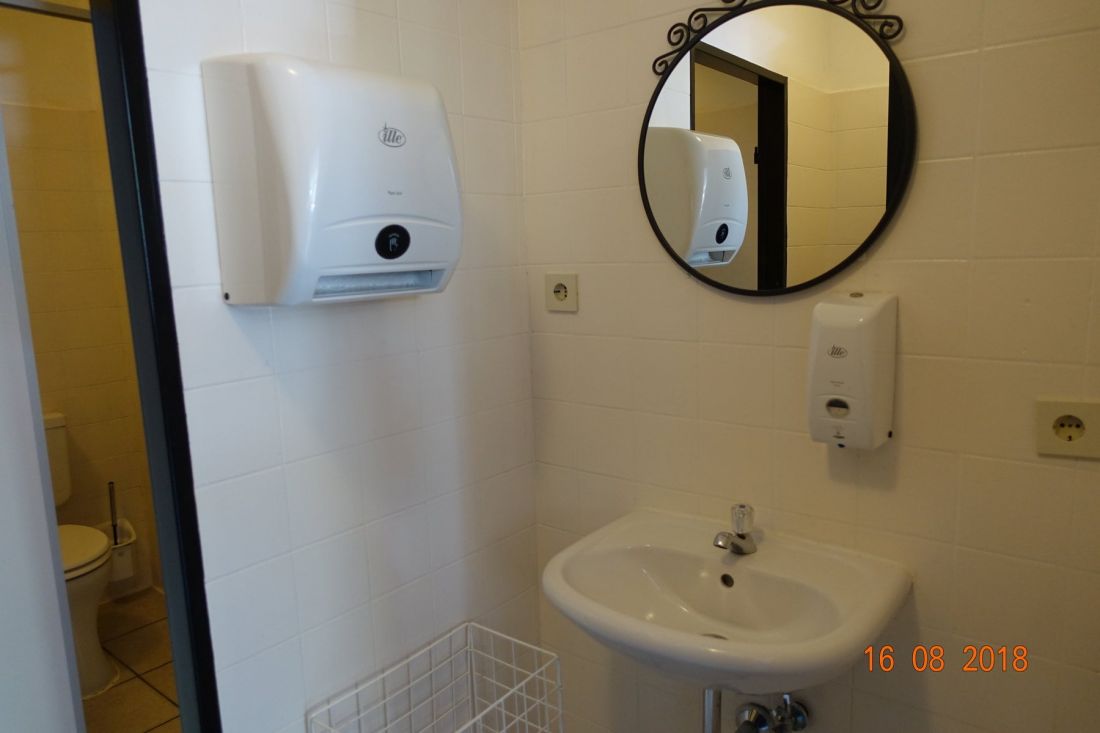 - getrennte Toiletten + Urinale + MA-WC; Sanitärräume weiß gefliest