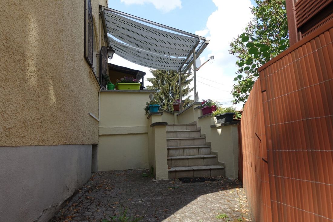 Eine Terrasse (Freisitz) mit Überdachung ist von der Küche aus erschlossen und bietet zudem Zutritt zu dem um das Haus herum angelegten Garten mit Gerätehaus. Im Dachgeschoß befindet sich ein für Wohnzwecke geeignetes Studiozimmer.