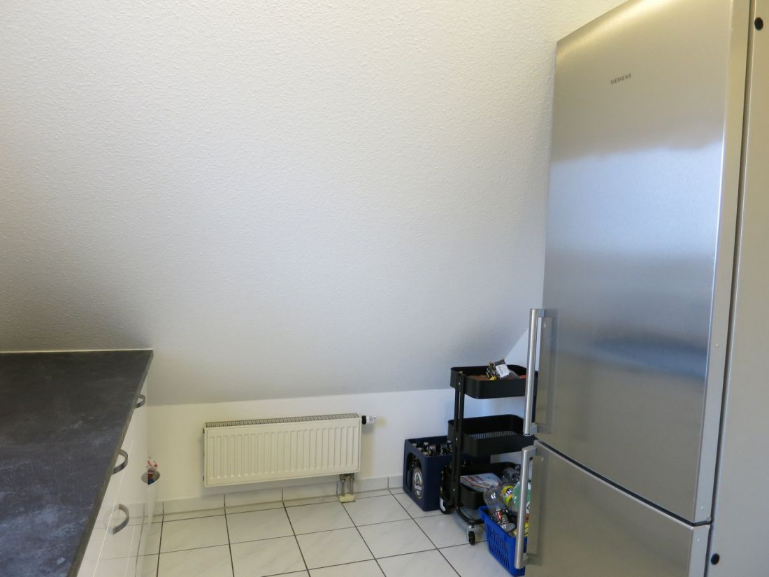 Stauraum bieten ein Abstellraum sowie eine Nische unter der Dachschräge in der Wohnung.