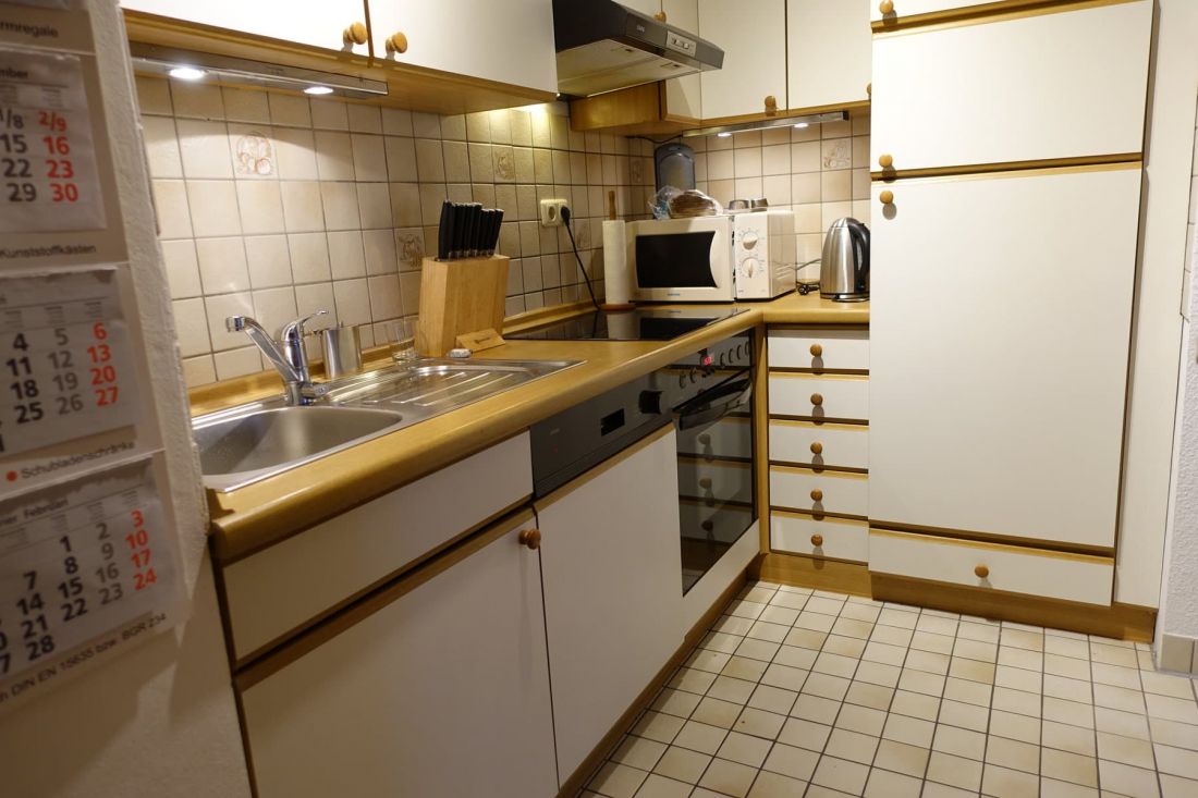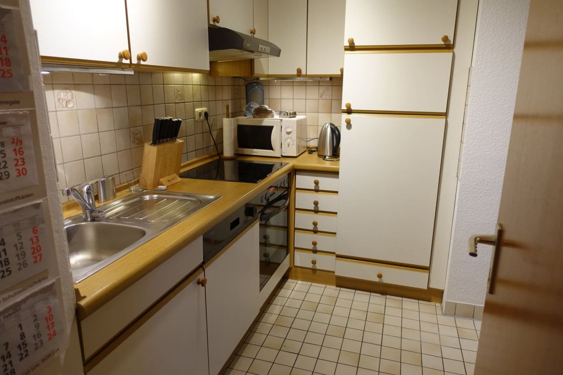 - Einbauküche bestehend aus Ober- und Unterschränken, Spülbecken, E-Geräte (Geschirrspülmaschine, Herd, Backofen, Dunstabzughaube, Kühlschrank)
