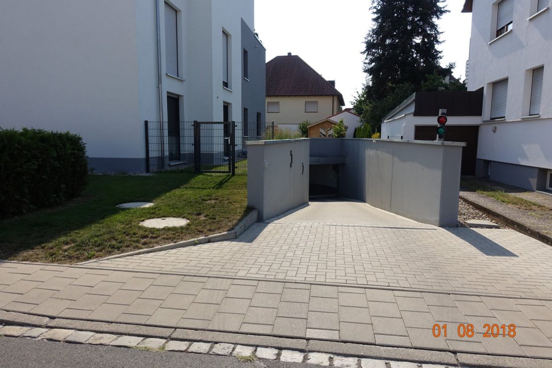 - Tiefgaragenzugang über Keller; Zufahrt über Rolltor mit Funkfernbedienung