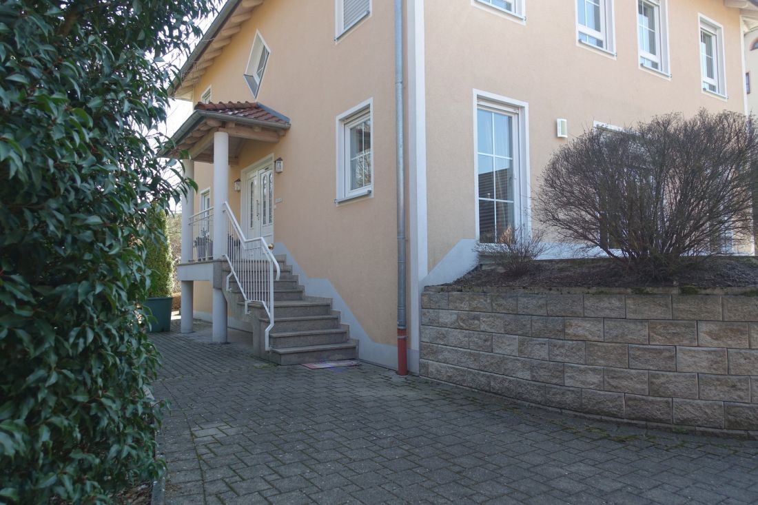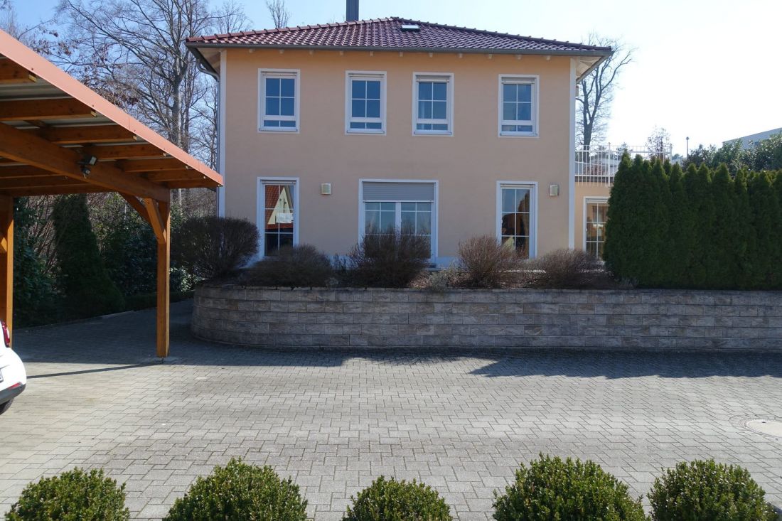 - Gestaltete Außenanlagen; Zufahrt und Terrasse gepflastert, ebene Rasenfläche