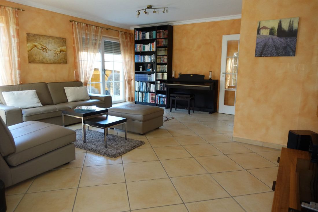 - Fußböden: Fliesen im Erdgeschoß, Teppich im Obergeschoß