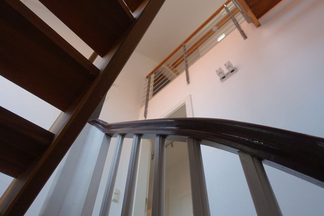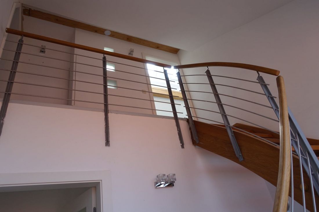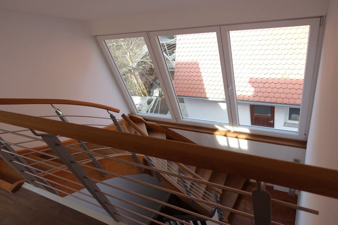 - großzügige Holztreppe/Holz-Stahlkonstruktion (ab 1. Obergeschoß), Treppenhaus mit großen Fensterelementen,
