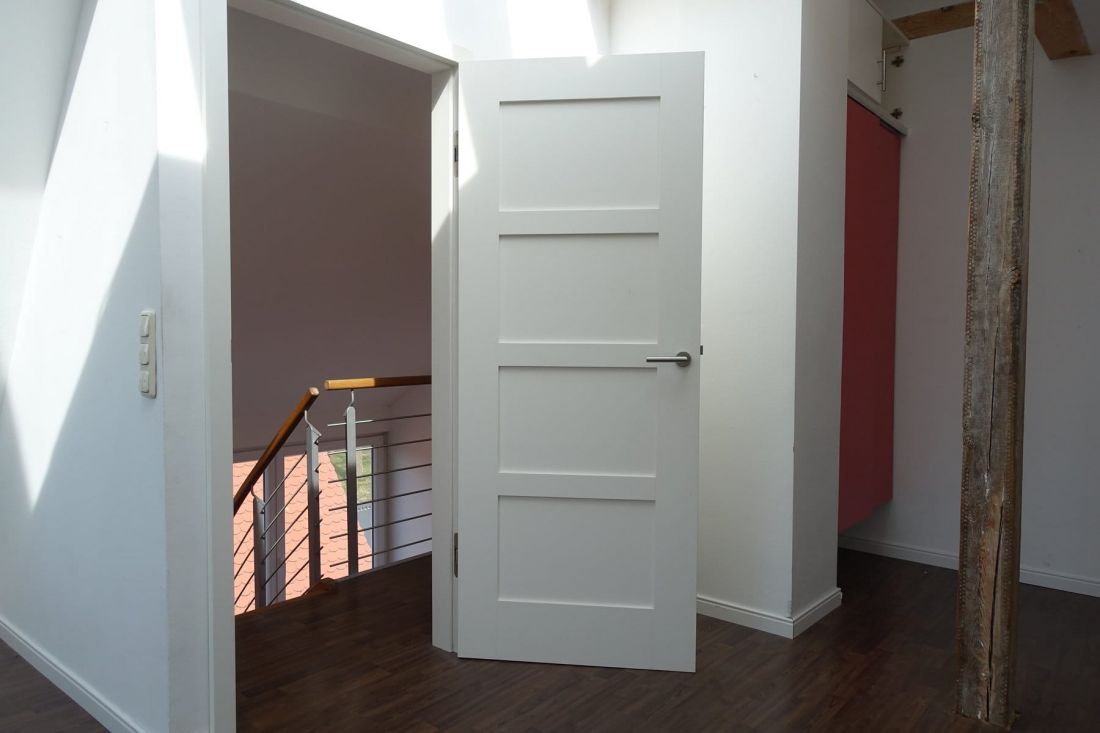 - Hochwertige Türen (moderne Drückergarnituren) vom Schreiner mit innenliegenden Türbändern