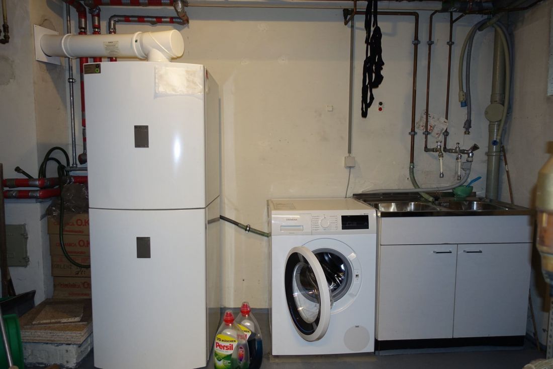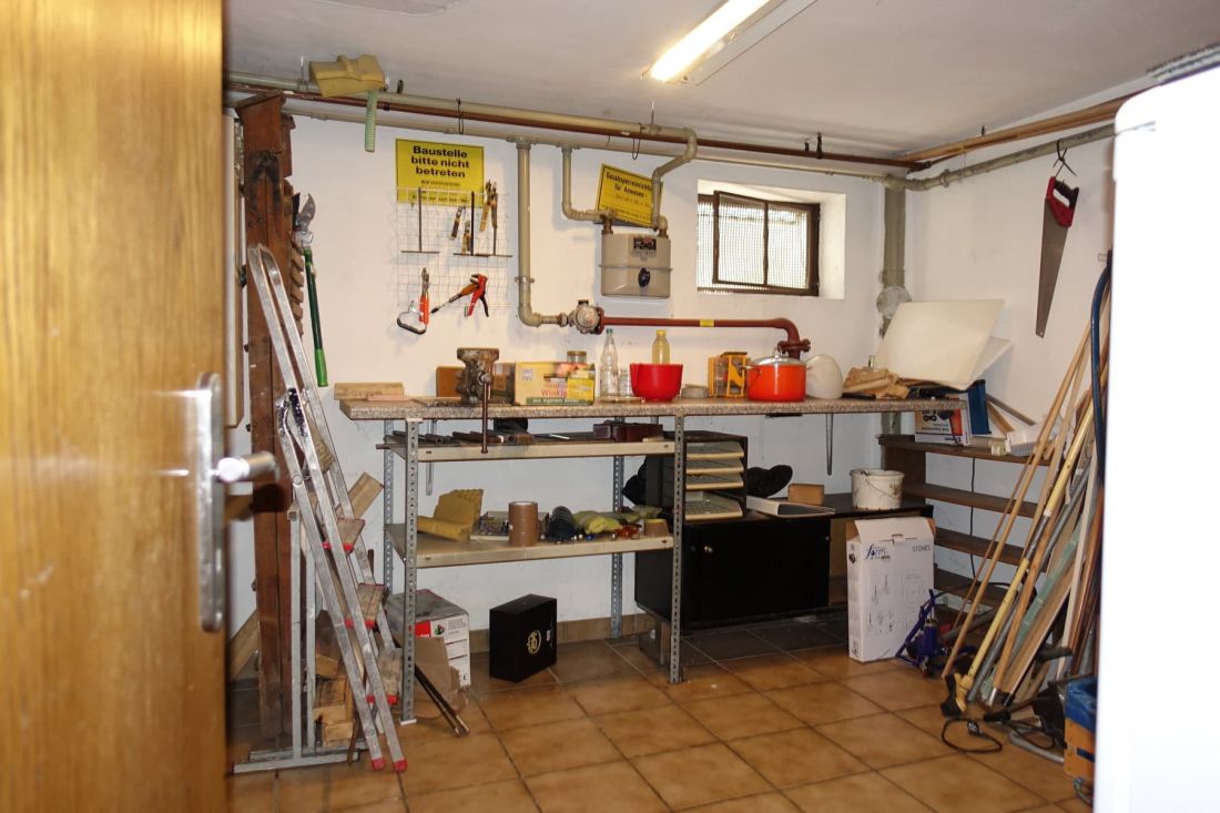 Im Kellergeschoss befindet sich ein ca. 25 qm großer, beheizter Kellerraum mit Fenster, ein kleiner Abstellraum, ein weiterer Kellerraum von ca. 10 qm sowie ein Hauswirtschaftsraum mit Anschlüssen für Waschmaschine und Trockner und der Gaszentralheizung von Buderus.