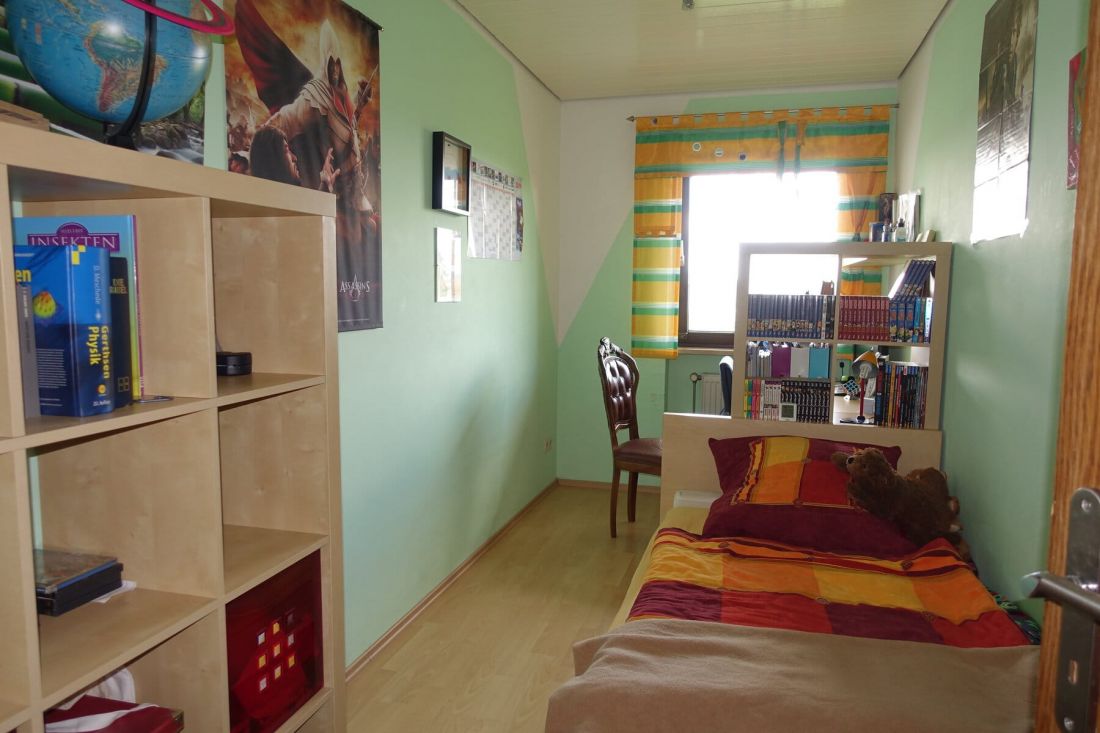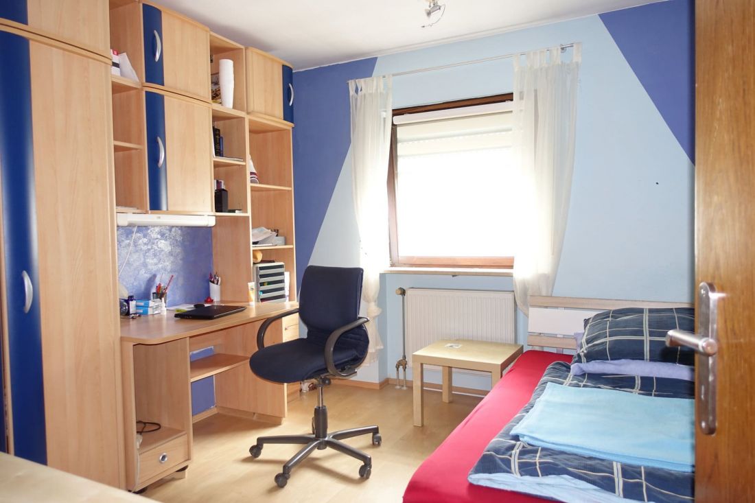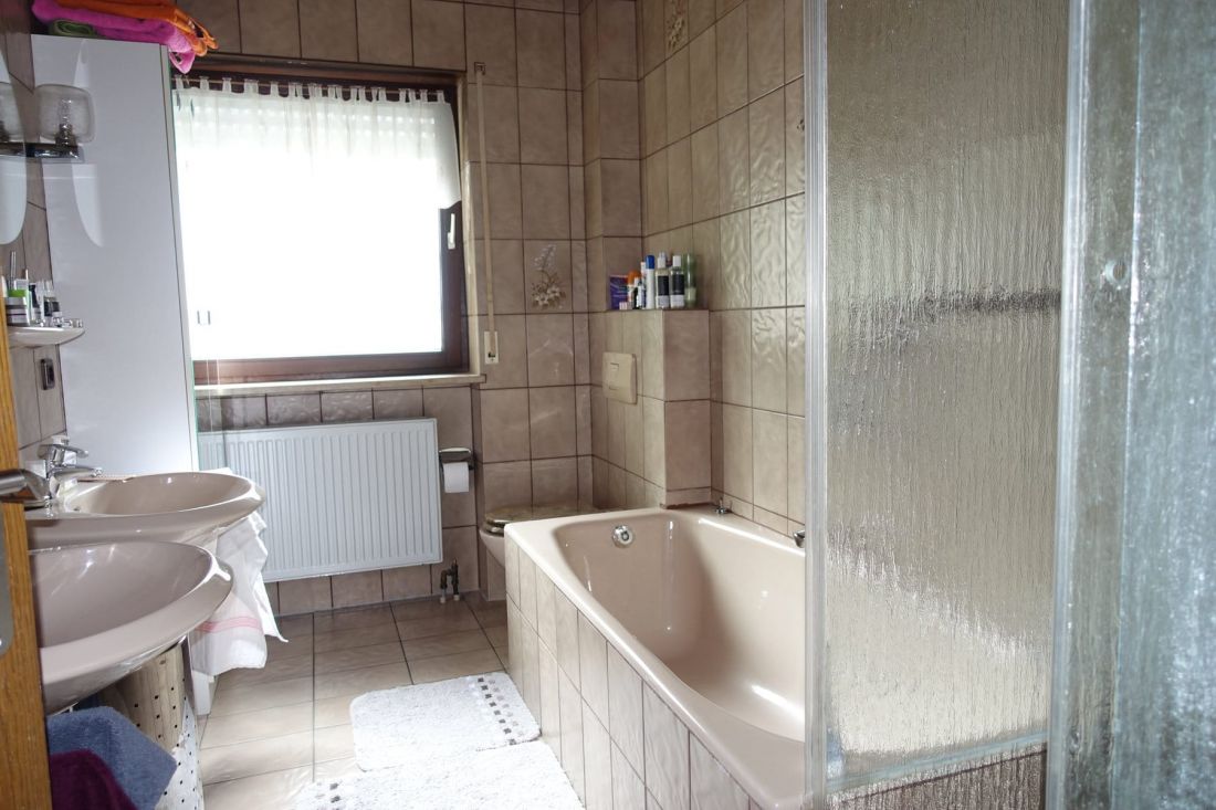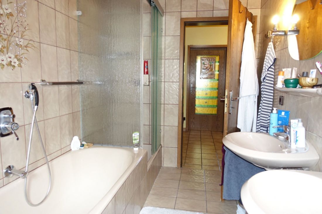 Drei weitere Zimmer und ein Badezimmer mit zwei Waschbecken, einer Dusche sowie einer Badewanne befinden sich im 1. Obergeschoss. Das Schlafzimmer verfügt über eine Loggia/Balkon in West-Ausrichtung.