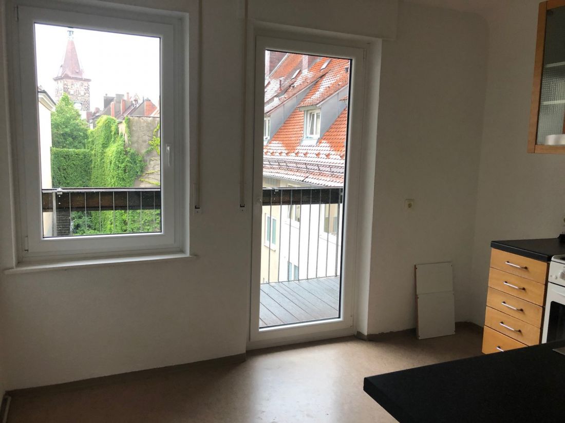 Über die Küche gelangt man auf den Balkon, der zum ruhigen Innenhof hin ausgerichtet ist. Die Einbauküche wird mitvermietet, eine Ablöse ist nicht vorgesehen.