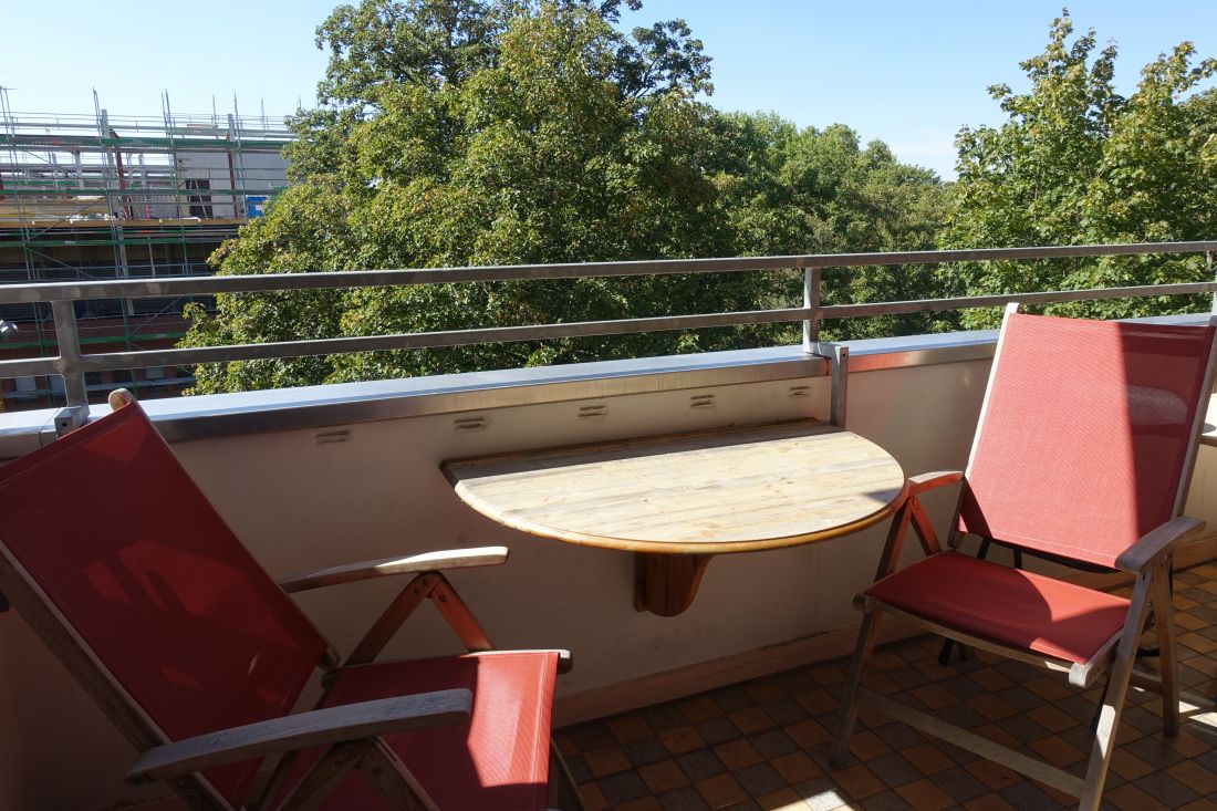 Im 5. Obergeschoss, welches man bequem mit dem Aufzug erreicht, hat man sehr gute Tageslichtverhältnisse. Richtung Westen genießt man ab der Mittagszeit die Sonne auf dem von Wohnzimmer und Küche aus begehbaren Balkon.