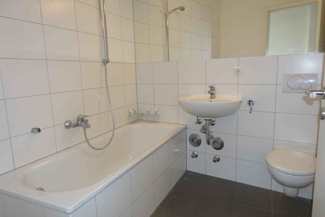- Einbauküche bestehend aus Ober- und Unterschränken, Herd mit Cerankochfeld, Spülbecken und Dunstabzughaube. Es ist bereits ein Platz für eine Geschirrspülmaschine in der Küchenzeile vorgesehen – diese müsste allerdings direkt durch den Mieter bereitgestellt werden.