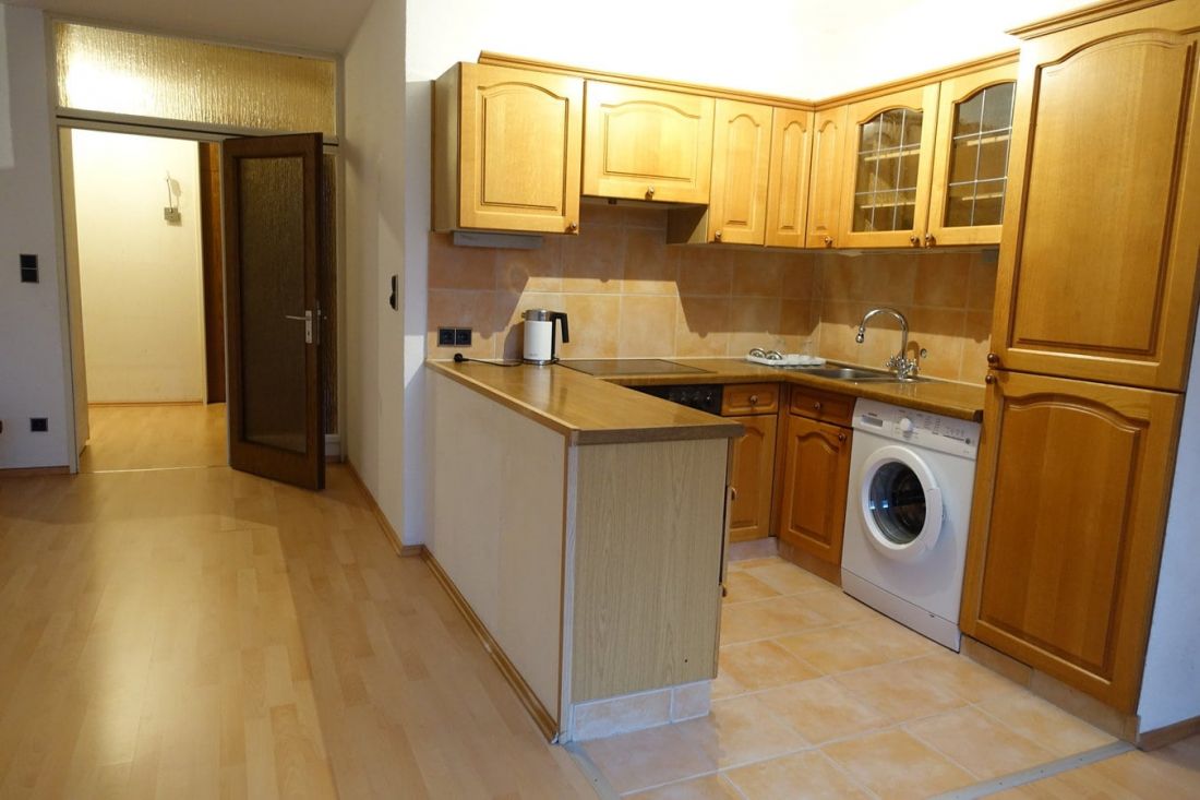 - Einbauküche inkl. Ober- und Unterschränke, Cerankochfeld, Backofen, Kühlschrank, Spüle, Waschmaschine