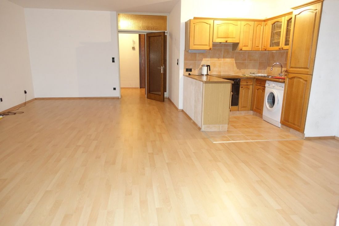 Aus der ursprünglichen 3-Zimmerwohnung ist durch Wegfall einer Trennwand eine 2-Raum-Wohnung entstanden. Dieser Zustand ließe sich umkehren. Sämtliche Räume sind über den Flur erschlossen – ohne Durchgangszimmer. In das großzügige Wohn- und Esszimmer ist eine offene Küche integriert. Die Küche sowie eine vorhandene Waschmaschine sind ohne Ablöse Bestandteil des Angebotes.