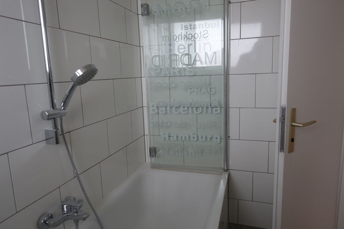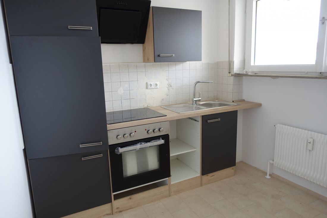 - Einbauküche bestehend aus Ober- und Unterschränken, Herd mit Cerankochfeld, Spülbecken und Dunstabzughaube. Es ist bereits ein Platz für eine Geschirrspülmaschine in der Küchenzeile vorgesehen – diese müsste allerdings direkt durch den Mieter bereitgestellt werden.