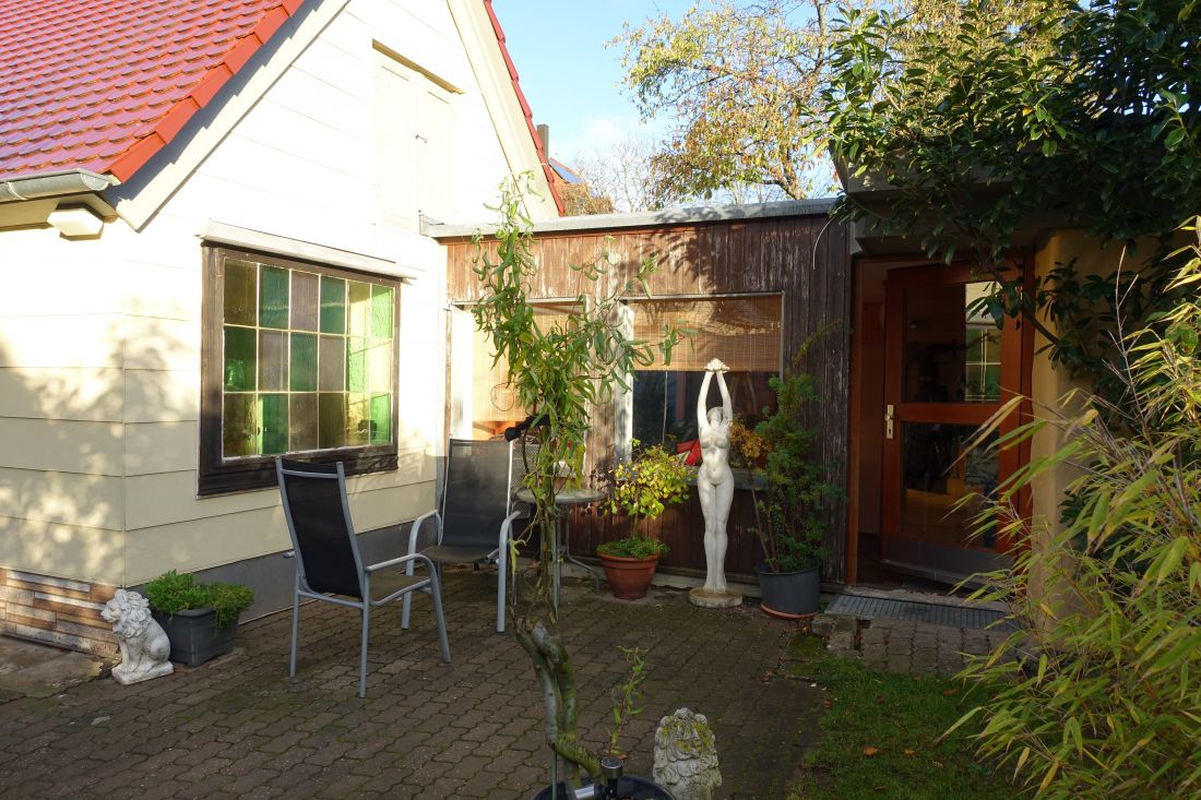 Bei der angebotenen Immobilie handelt es sich um ein ursprünglich als Behelfsheim errichtetes Haus mit Anbau und Garage. Das Anwesen ist zu Wohnzwecken vermietet und präsentiert sich in einem gepflegten Zustand, obgleich bei der Ausstattung von einfachstem Standard gesprochen werden kann. Diverse Modernisierungsarbeiten wurden in Eigenleistung durch den aktuellen Mieter ausgeführt. Eine Zentralheizung ist nicht vorhanden. Der Mieter heizt mit selbstbeschafften Holzöfen. Nach Erbauung des Gebäudes wurde die Raumaufteilung verändert. Im Erdgeschoss befinden sich eine Wohnküche sowie ein Arbeits- und ein Schlafzimmer – der Stauraum des Dachbodens ist von außen zugänglich. Ein gepflegter Garten verleiht dem Objekt ein besonderes Flair.
