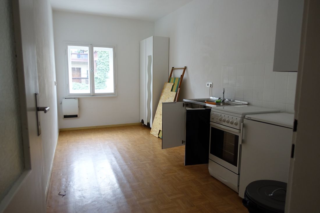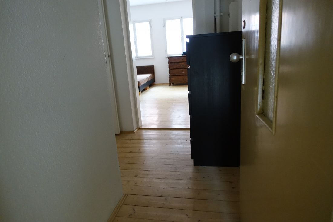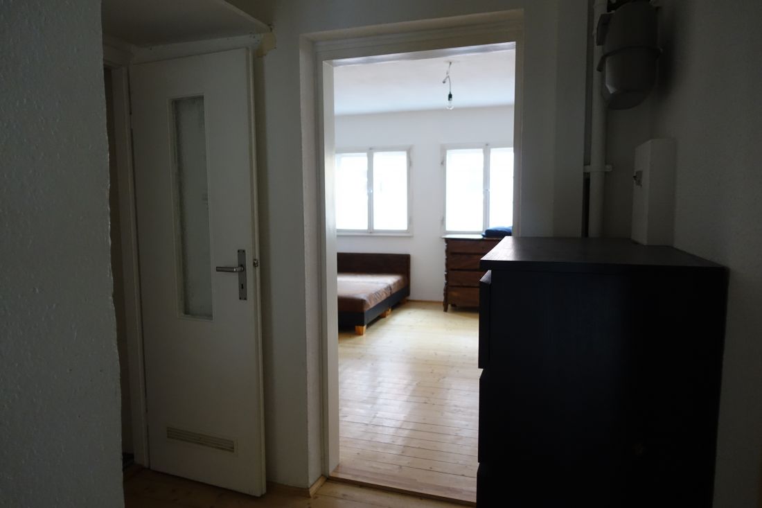 Es handelt sich um eine kleine 2-Zimmerwohnung mit abgetrennter Küche, innenliegendem Duschbad, Wohn- und Schlafzimmer.