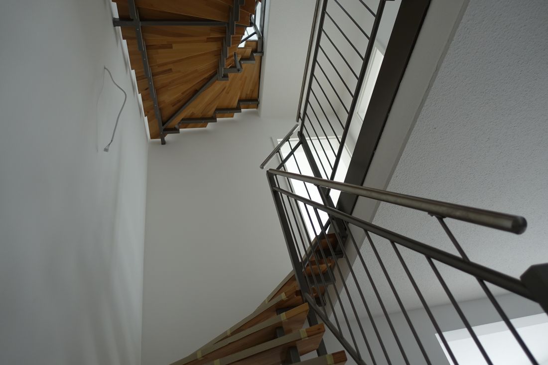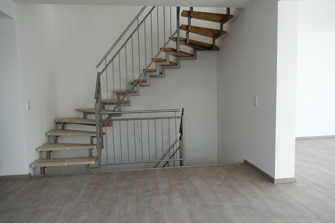 - Treppe in Holz-Metallkonstruktion mit Edelstahlhandlauf