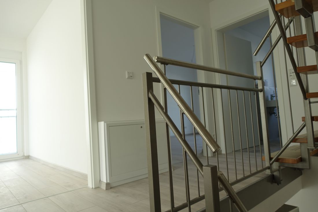 Das Erdgeschoss mit Zutritt zur Terrasse und dem noch zu begrünenden Außenbereich (Garten) ist als Wohn- und Essbereich mit offener Küche großzügig gestaltet und bietet dank der Südausrichtung beste Tageslichtverhältnisse.