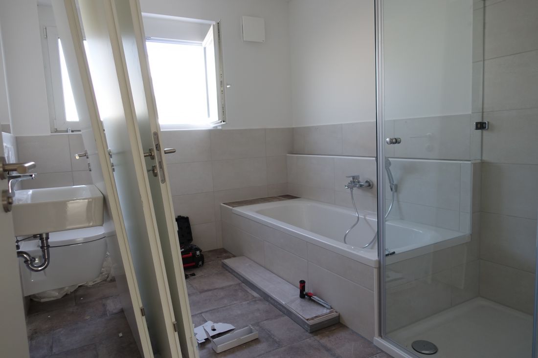 - Tageslichtbad mit Wanne, Dusche, WC, Handtuchtrockner im 1. Obergeschoss
