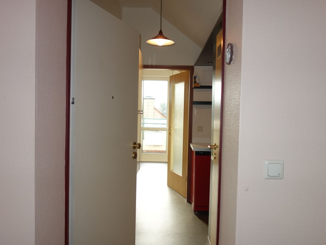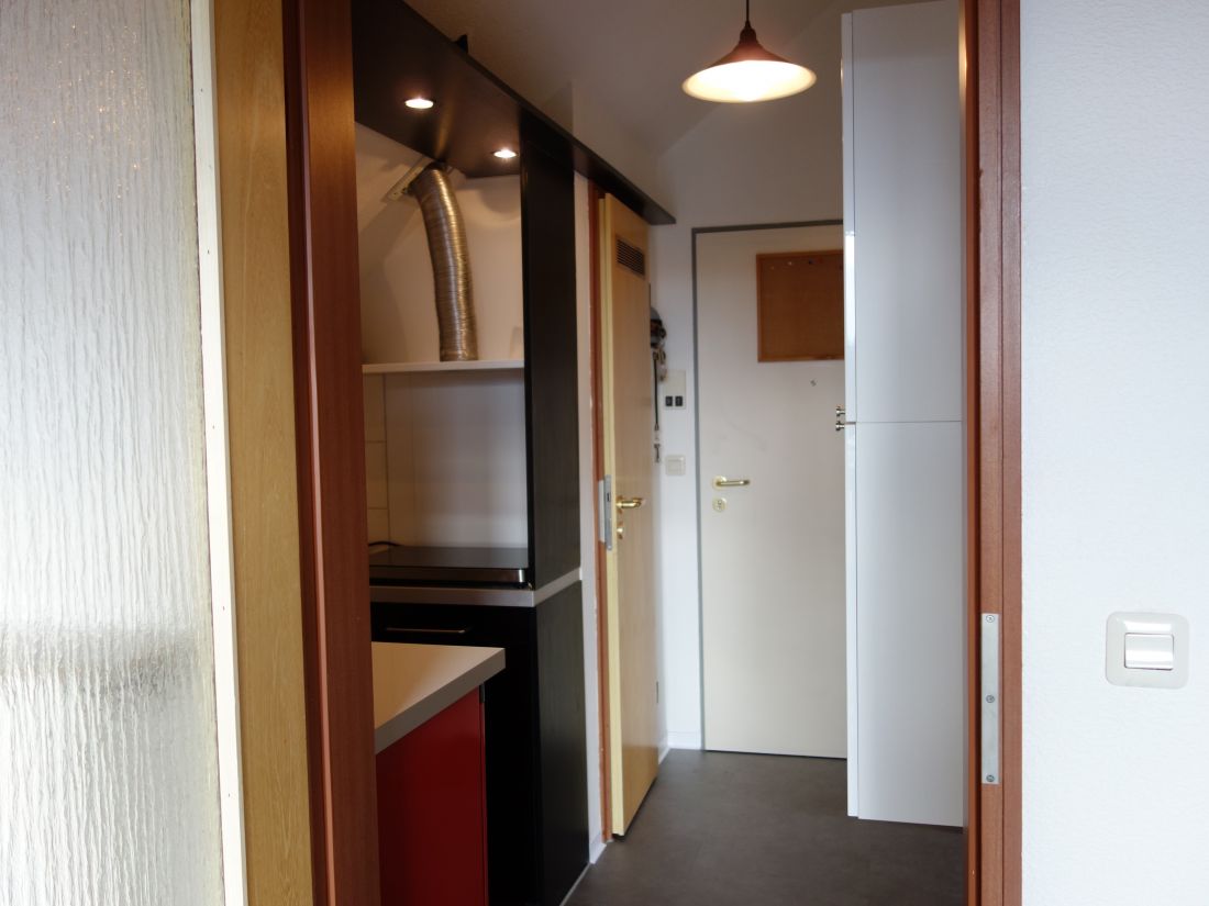Die Wohnung befindet sich im 4. OG und verfügt über ein renoviertes Tageslichtbad mit Duschkabine und Waschmaschinenanschluss, eine kleine Abstellkammer, eine Kochnische sowie ein Zimmer mit Balkon.