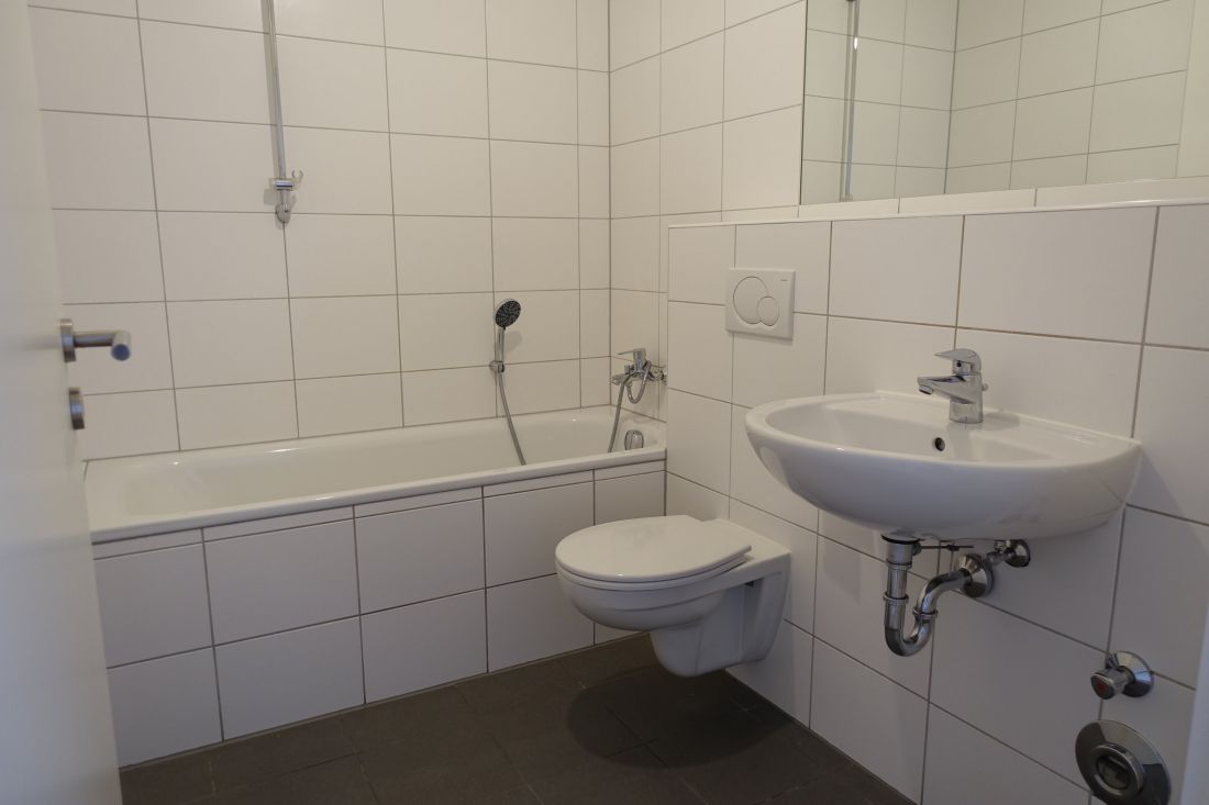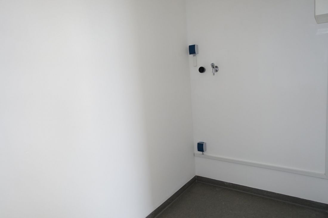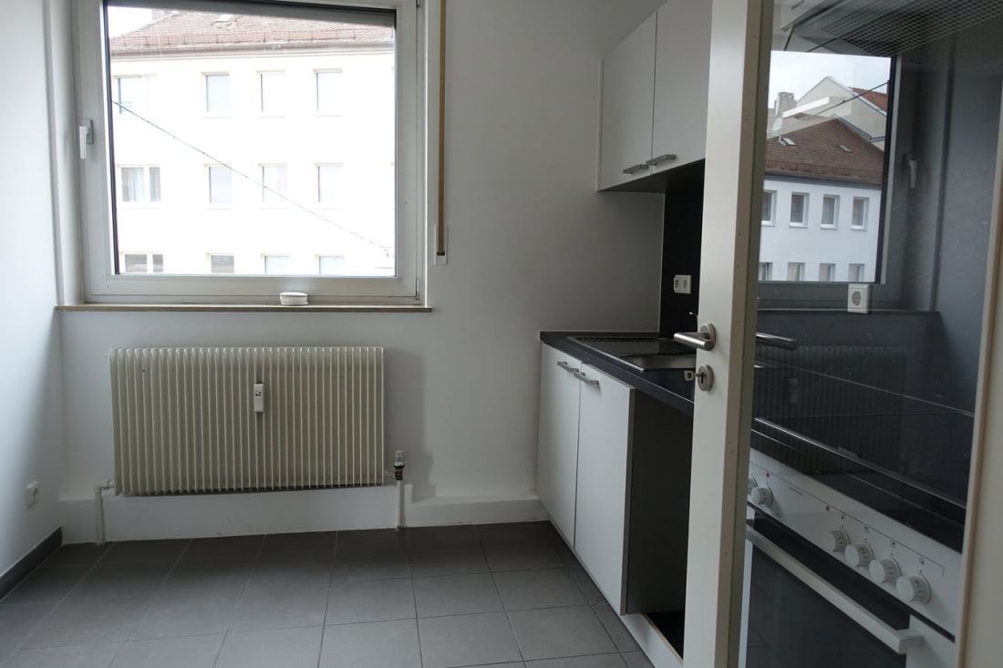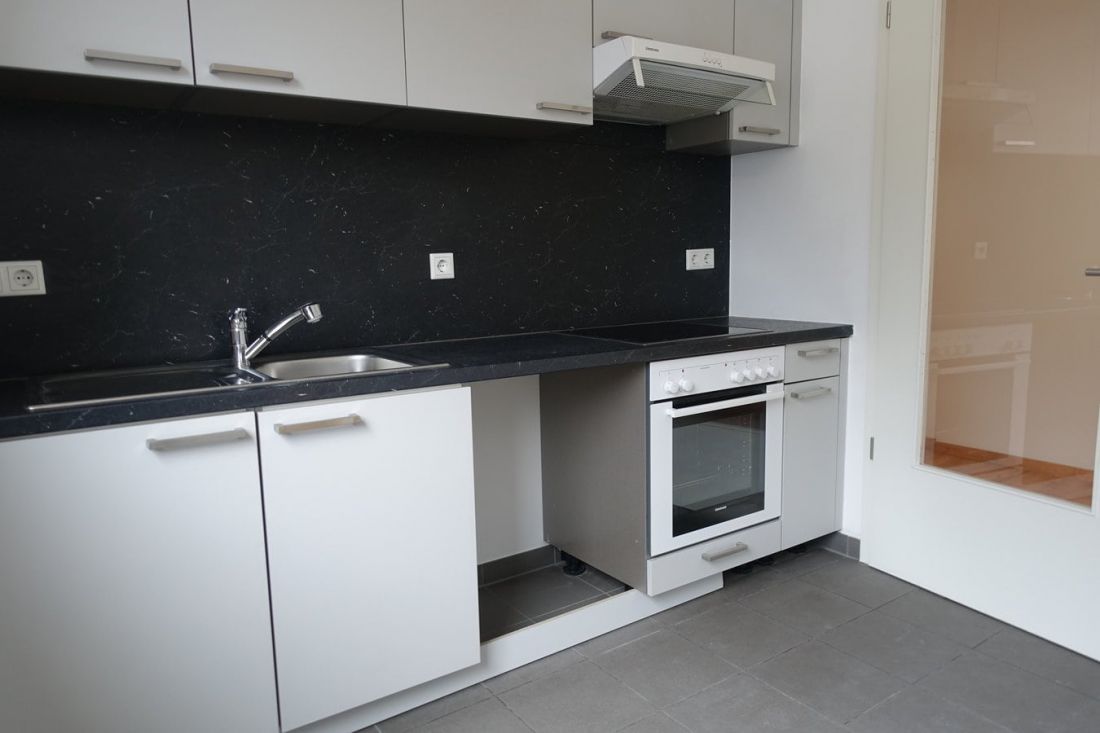 - Einbauküche bestehend aus Ober- und Unterschränken, Herd mit Cerankochfeld, Spülbecken und Dunstabzughaube. Es ist bereits ein Platz für eine Geschirrspülmaschine in der Küchenzeile vorgesehen – diese müsste allerdings direkt durch den Mieter bereitgestellt werden.