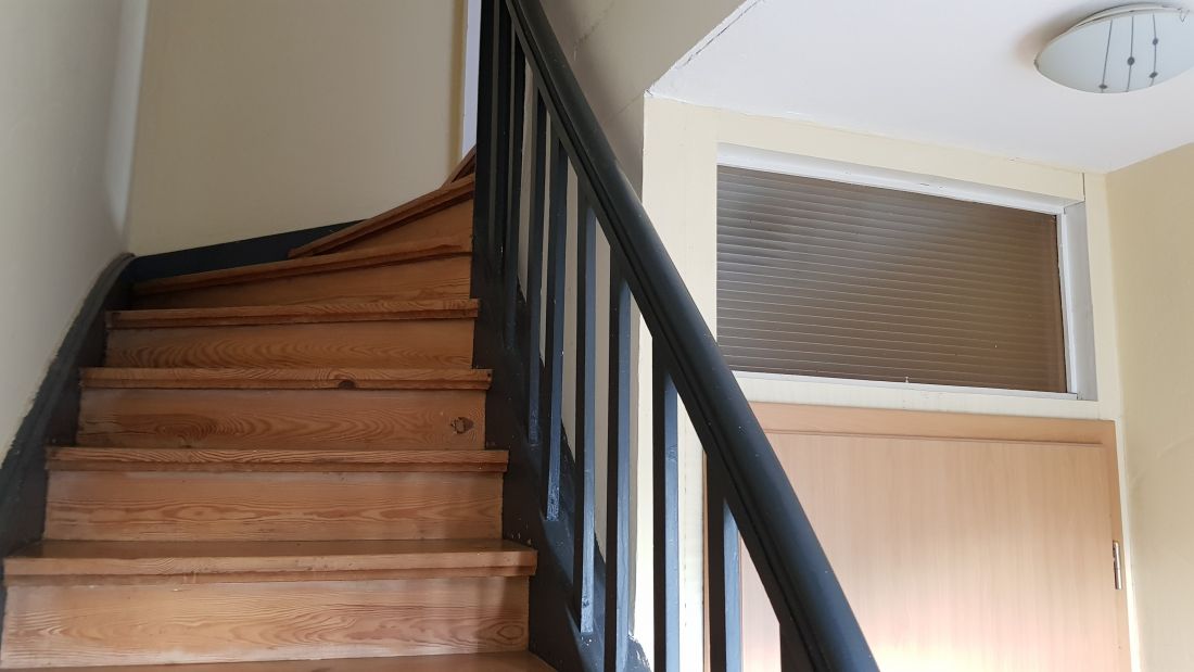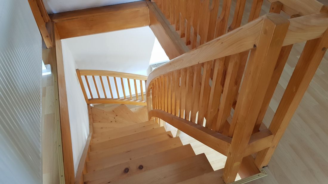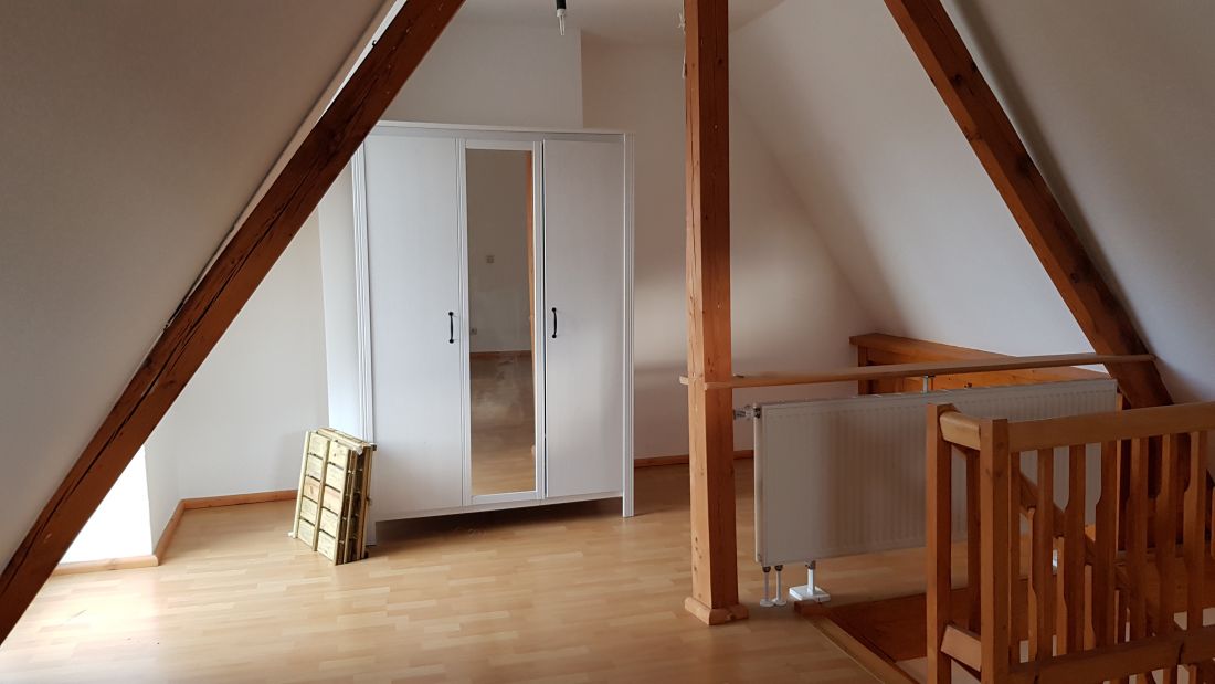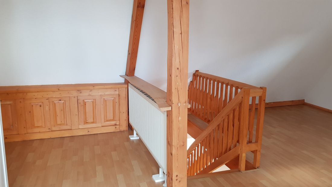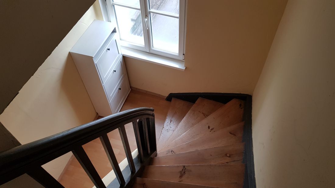 Der Eingang befindet sich im 3. Obergeschoss. Über eine Treppe gelangt man in das 4. Obergeschoss mit einem Wohn-/Esszimmer, einer geräumigen Küche, dem Bad und einem Abstellraum. Das Schlafzimmer befindet sich im 5. Obergeschoss.