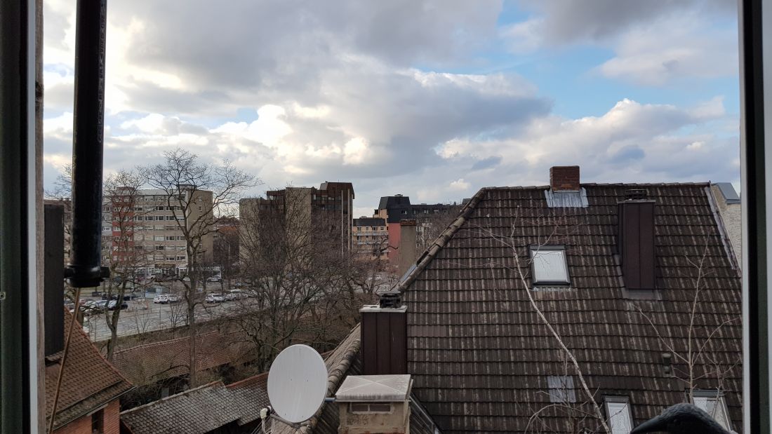Dank der Schallschutzfenster und der Lage im 4./5. Obergeschoss lässt es sich ruhig wohnen.