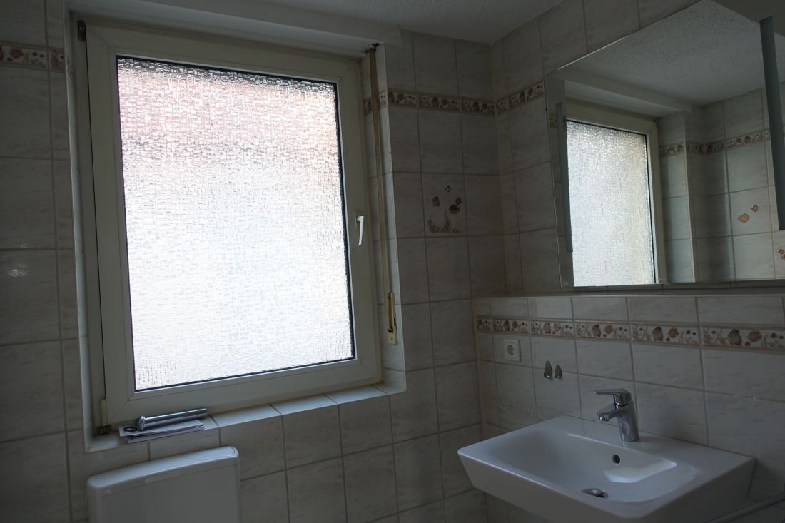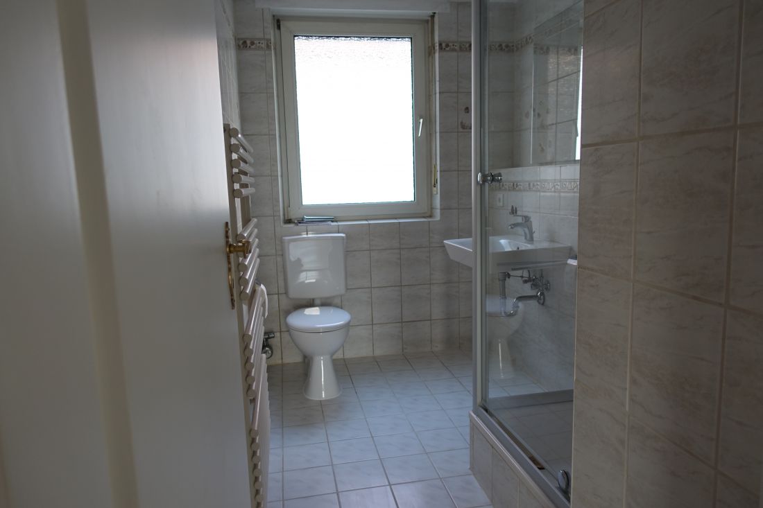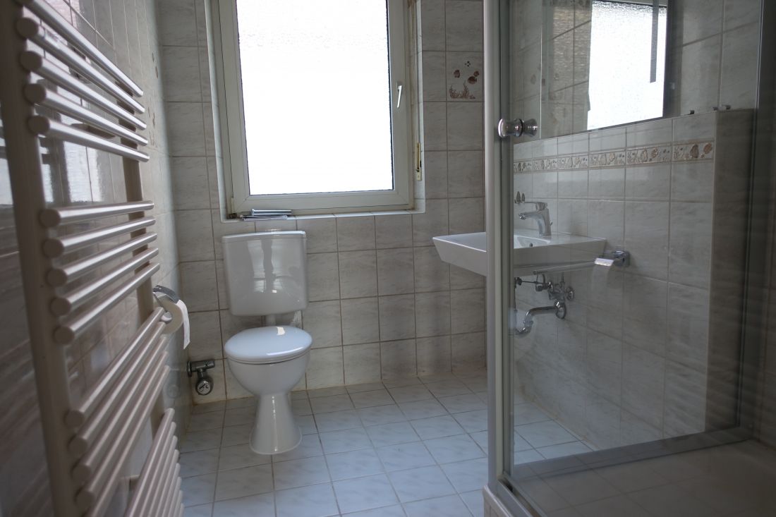 Das Tageslichtbad ist mit einem WC, Waschbecken und einer Dusche ausgestattet.