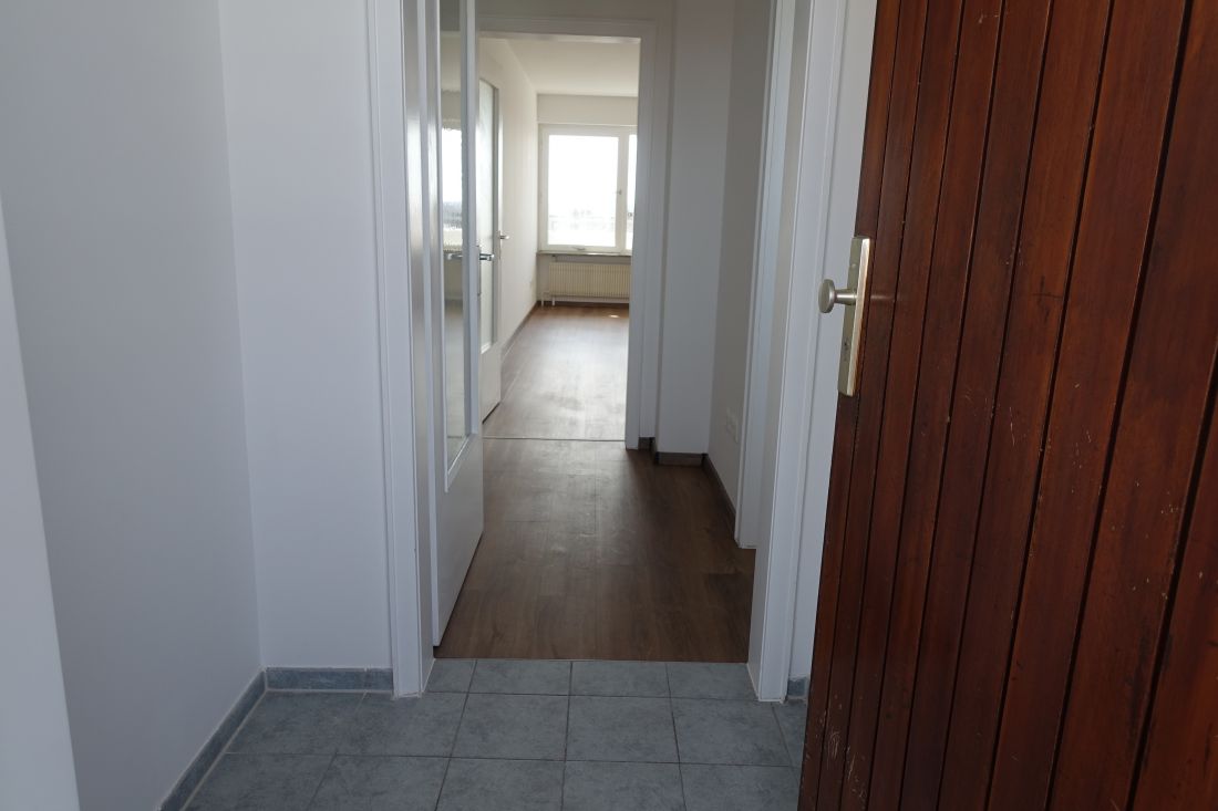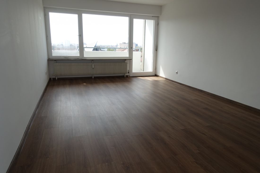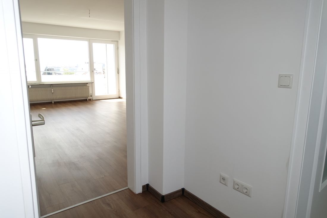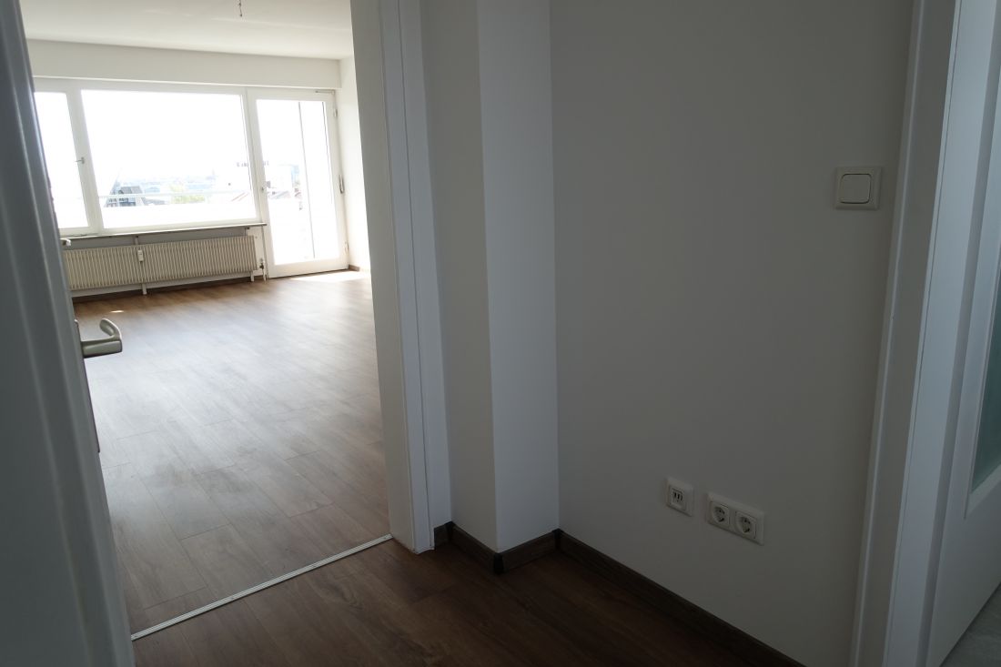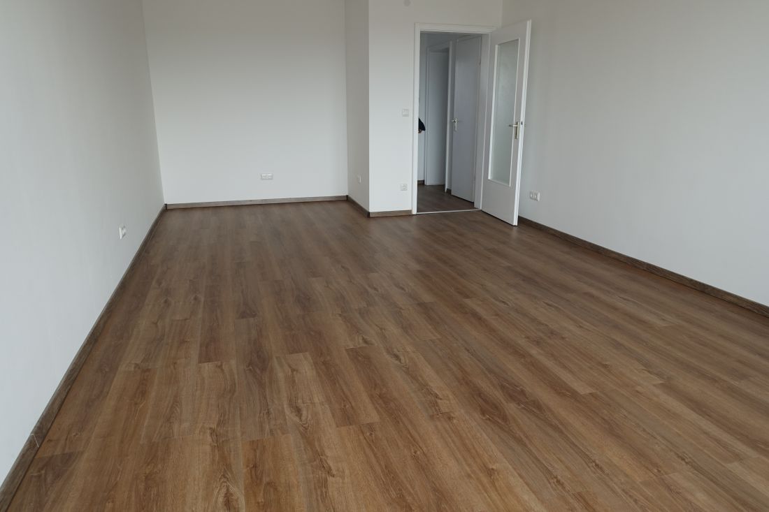 - heller Laminatboden in Flur und Wohnzimmer