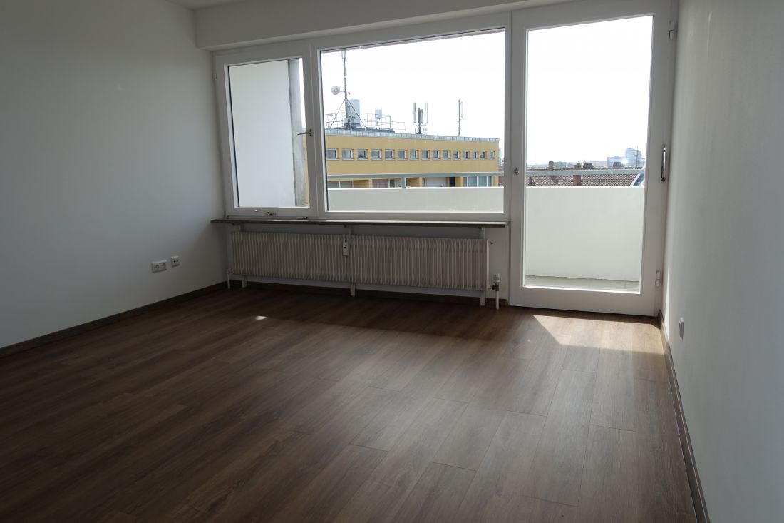 Bei der angebotenen Immobilie handelt es sich um eine helle 1-Zimmerwohnung mit Balkon im 5. Obergeschoss eines Wohn- und Geschäftshauses.