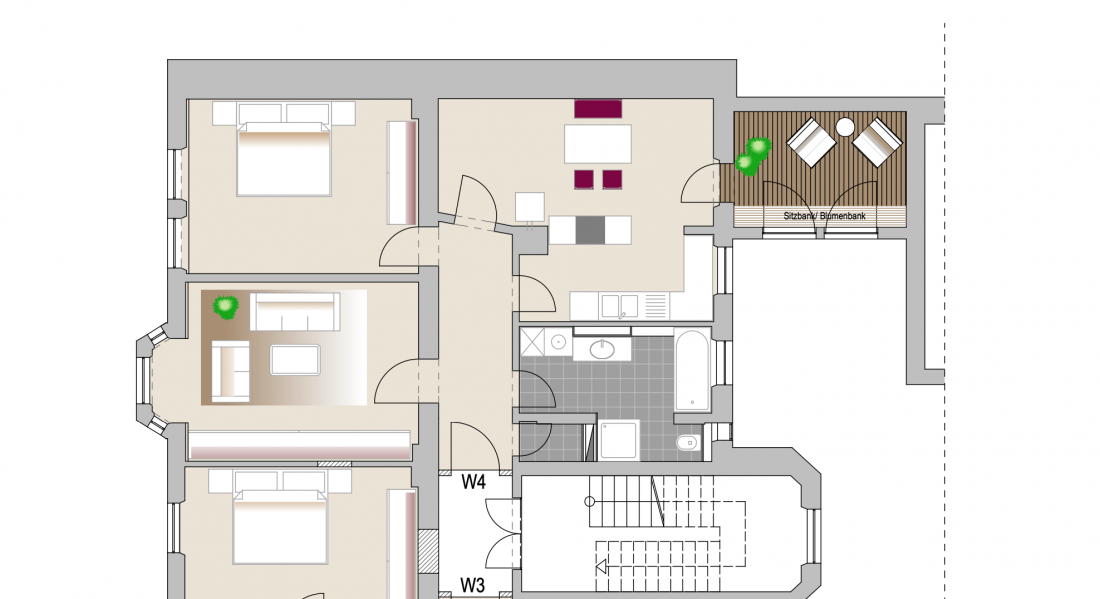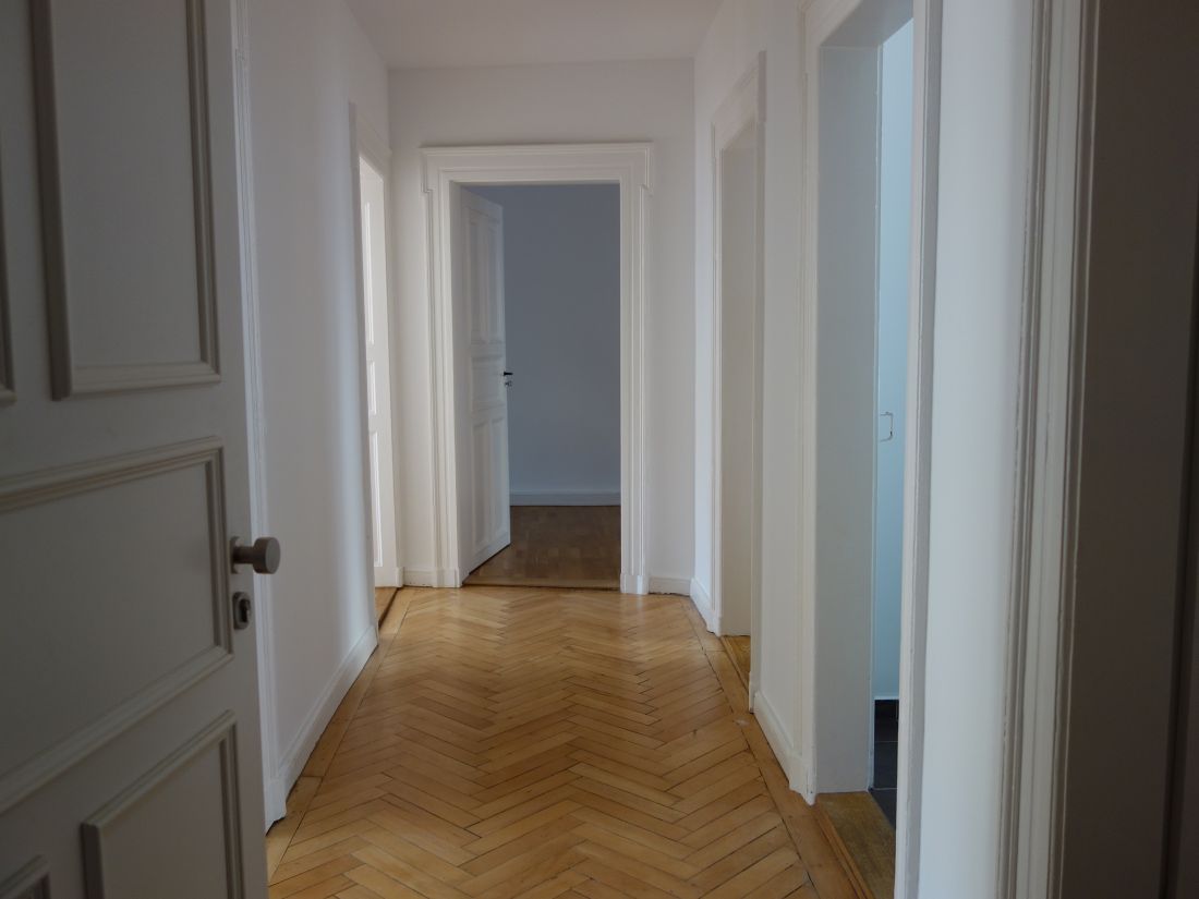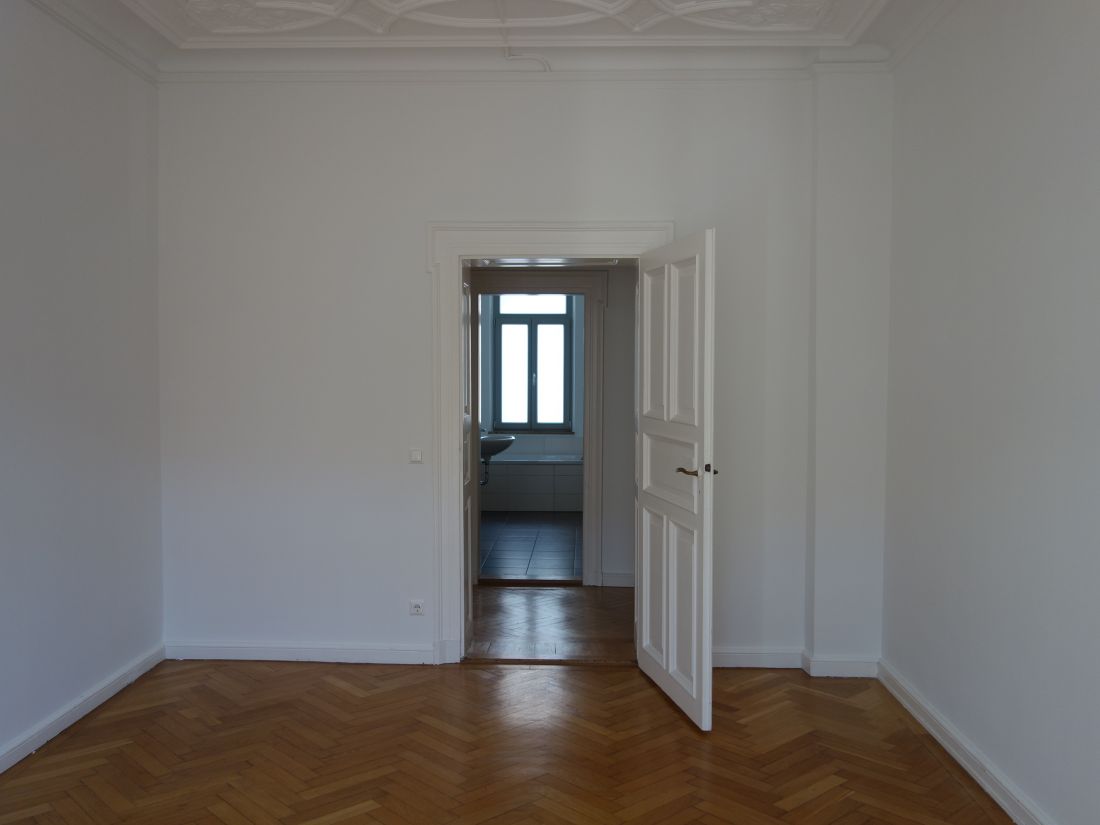 Das mit Stuckdecken und Fischgrätparkett ausgestattete Objekt verfügt über 3 Zimmer, ein Tageslichtbad mit Badewanne und Duschkabine, einen Abstellraum und eine offene Küche mit Esszimmer (Grundriss siehe Fotos).