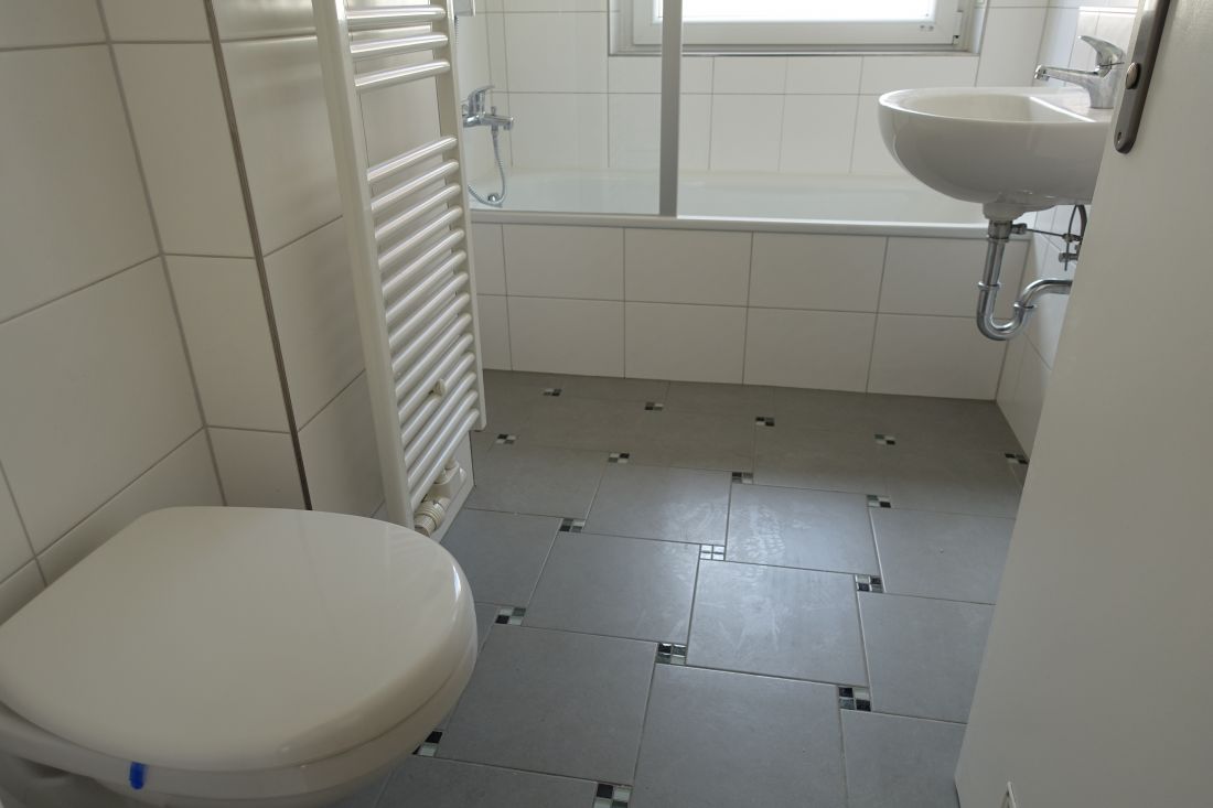 - Tageslichtbad mit Wanne, WC, Waschbecken und Spiegel, Duschabtrennung, Handtuchtrocknerheizkörper