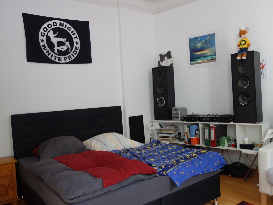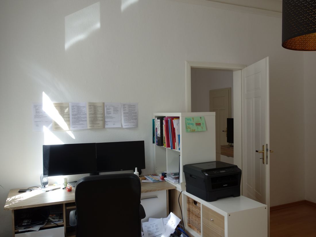 Parkplätze sind im Wohnviertel bzw. vor der Haustür vorhanden. Ein Bewohnerparkausweis kann bei der Stadt gegen eine Jahresgebühr (ca. 30,50 €) beantragt werden.