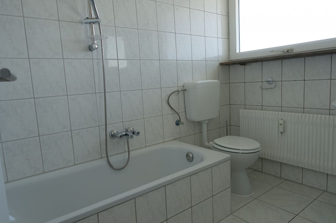 - renoviertes Badezimmer mit Badewanne, WC, Waschbecken und Spiegel