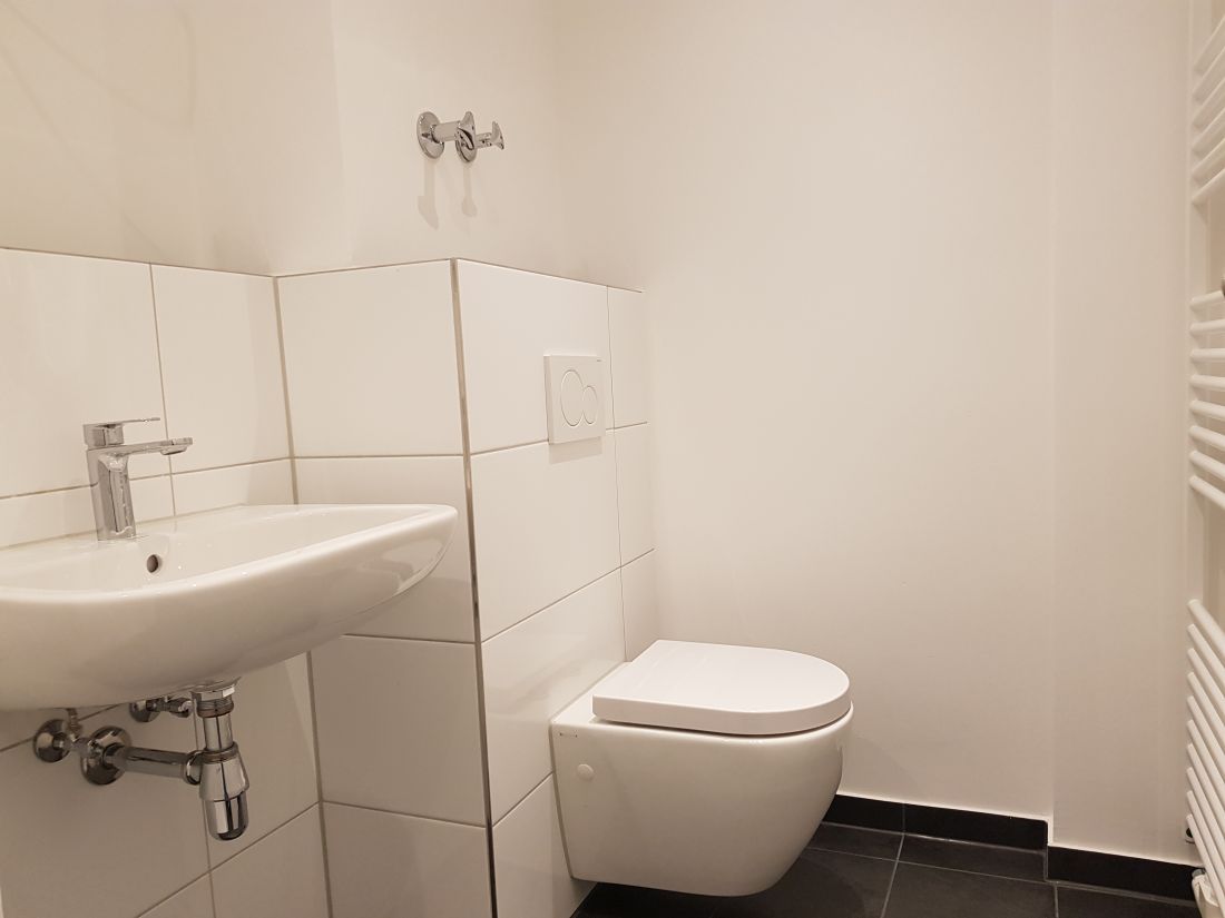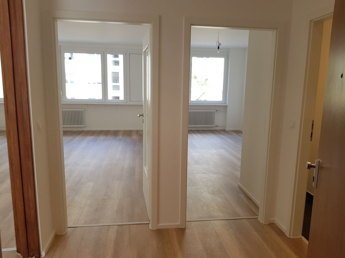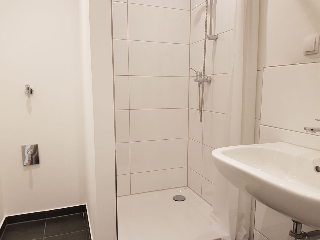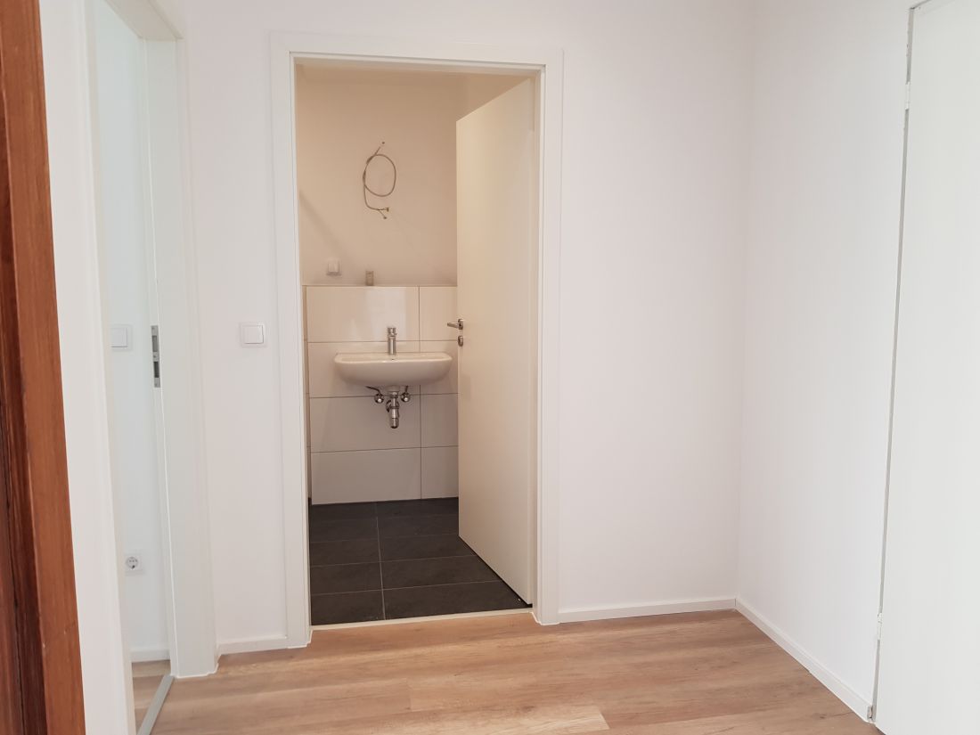 Aufgeteilt ist die Fläche in drei Räumlichkeiten, einen Flur und ein vollwertiges Badezimmer mit Dusche und Waschmaschinenanschluss.