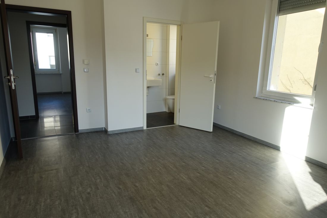 Bei der Sanierung wurde auf zeitgemäße Türen, Laminat und Fliesen Wert gelegt.