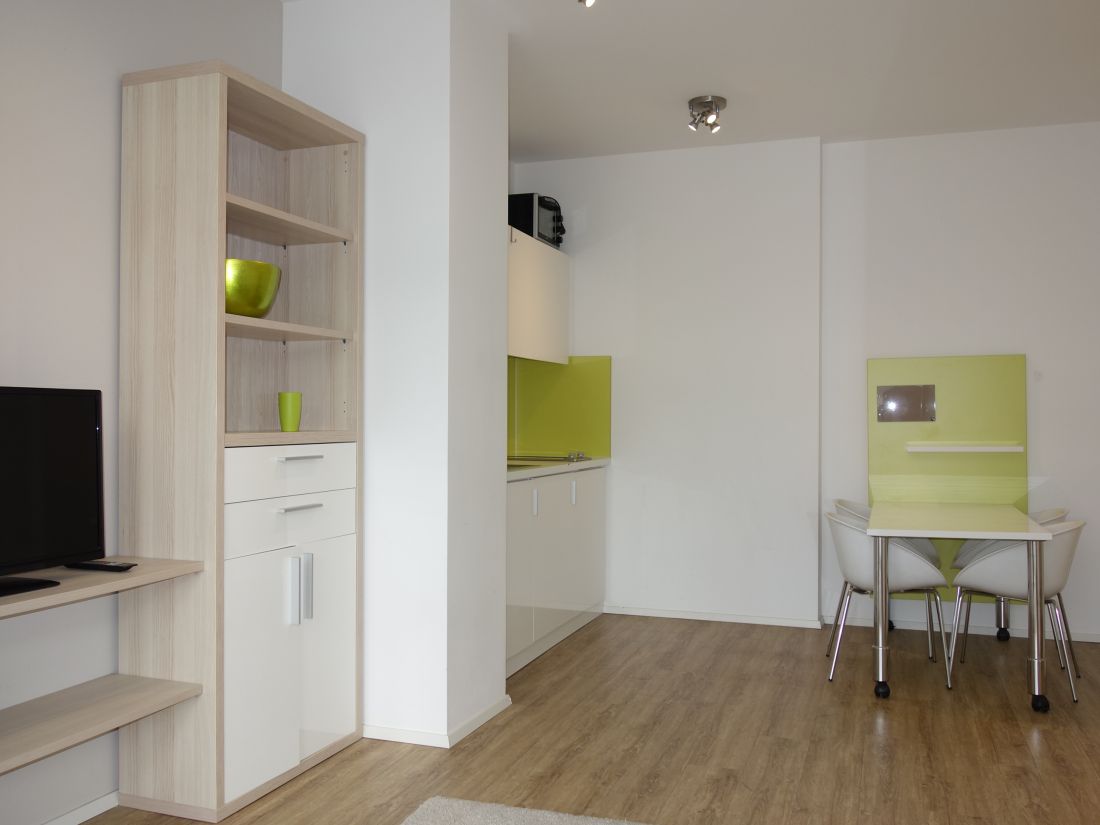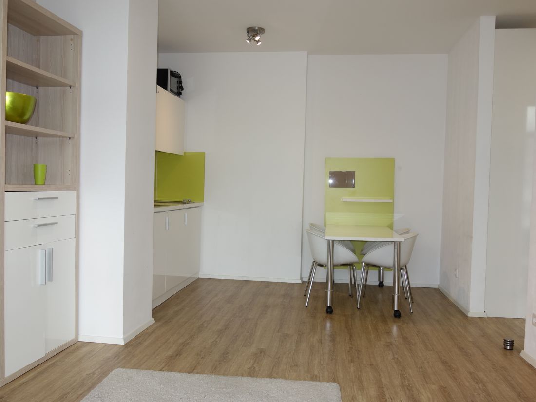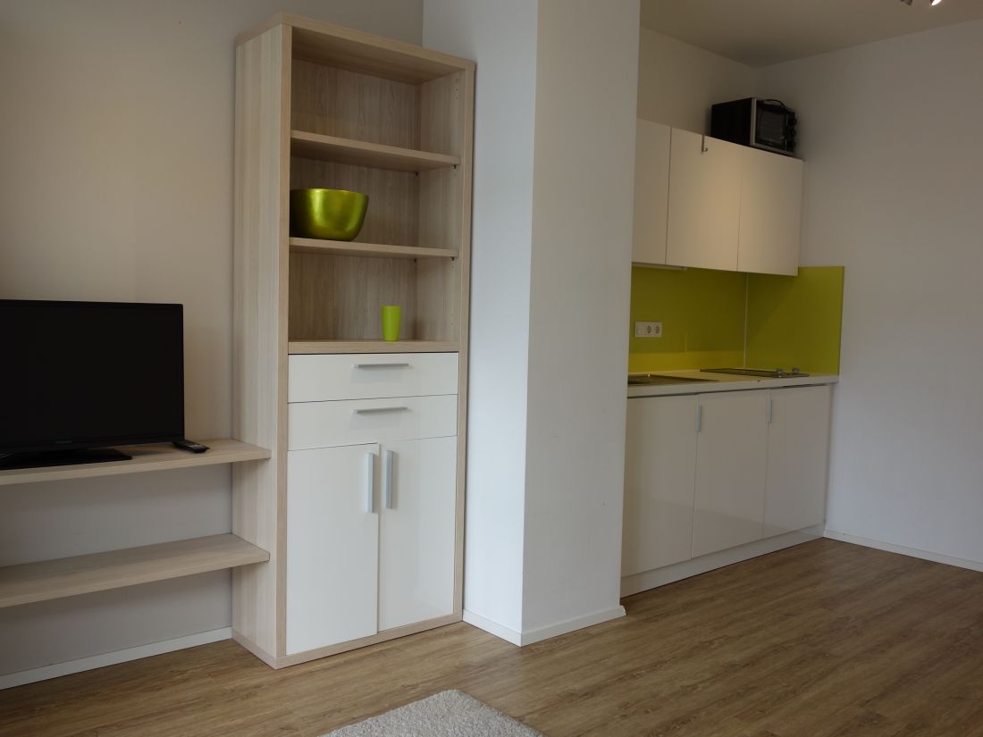 Die Teeküche und das vorhandene Mobiliar (Einbauschränke, Bett etc.) sind im Kaufpreis inkludiert.