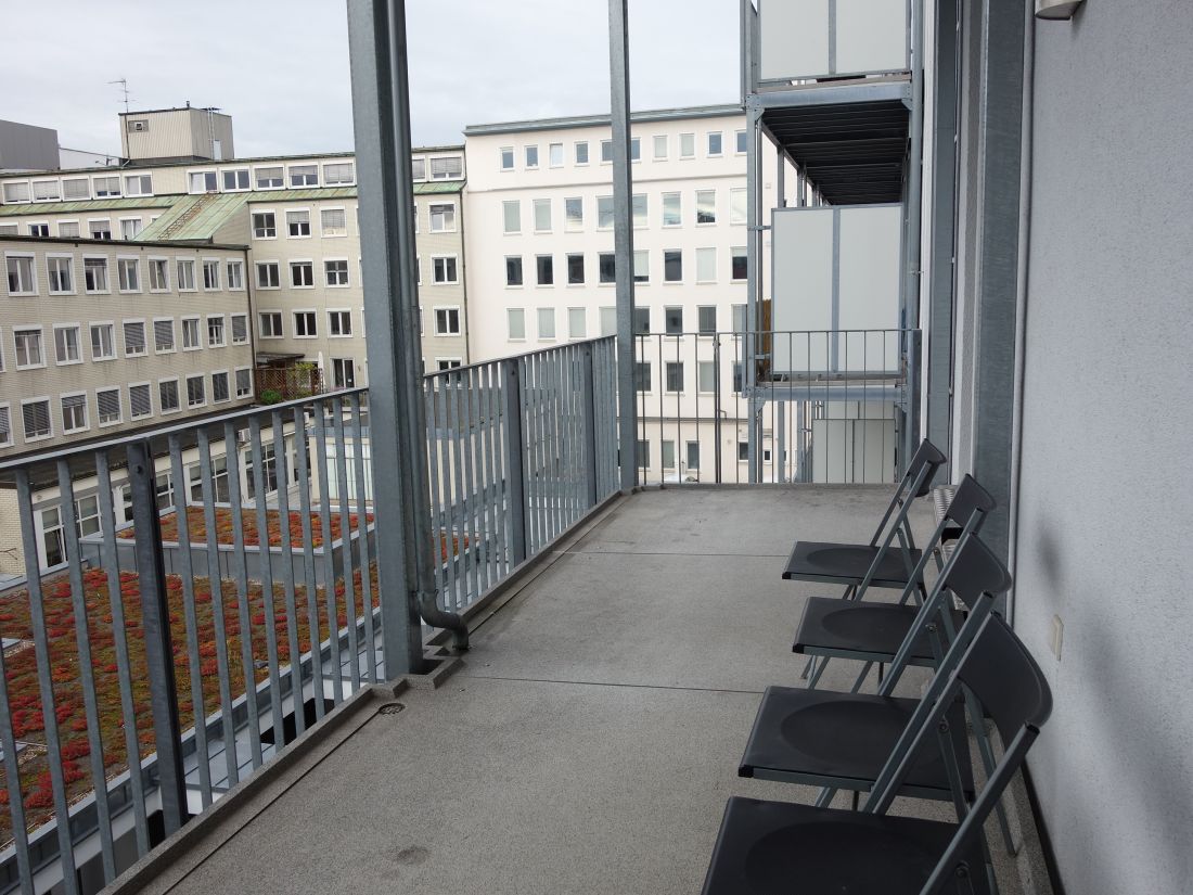 Das Highlight ist der nach Südwesten ausgerichtete und ca. 15 qm große Balkon, der sowohl über das Wohnzimmer als auch über das Schlafzimmer begehbar ist.