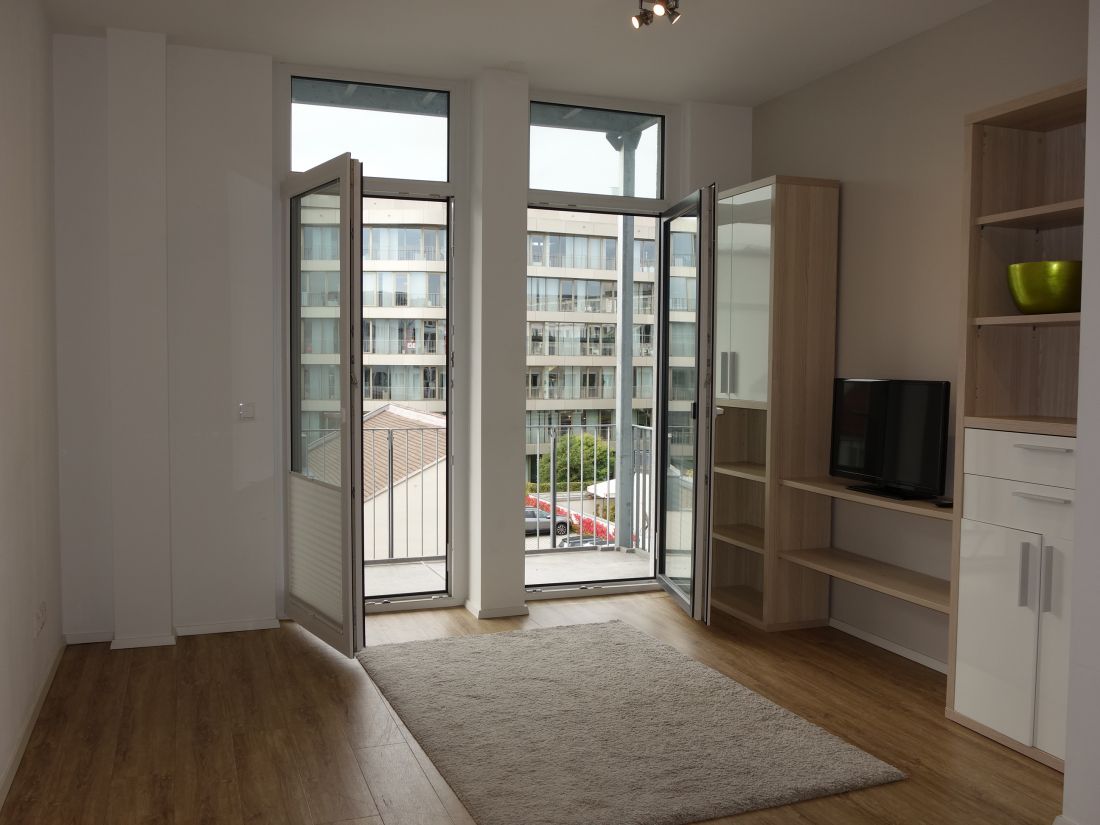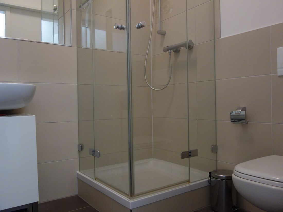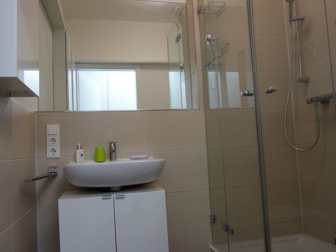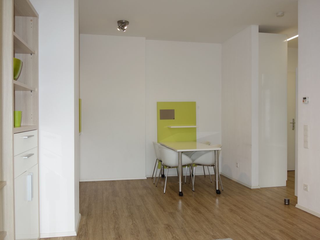 Die Wohnung ist aufgeteilt in ein Wohnzimmer, ein Schlafzimmer, einen Flur und ein Duschbad.