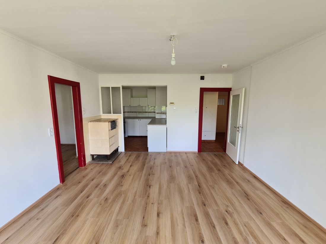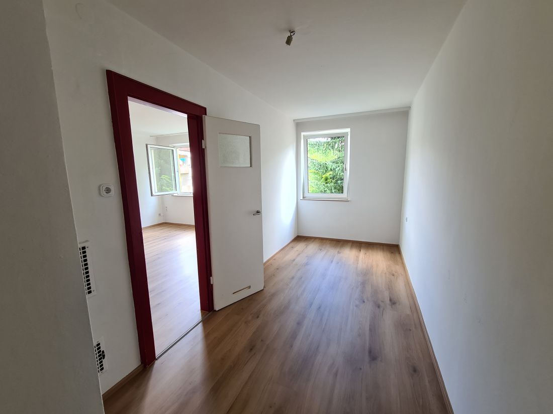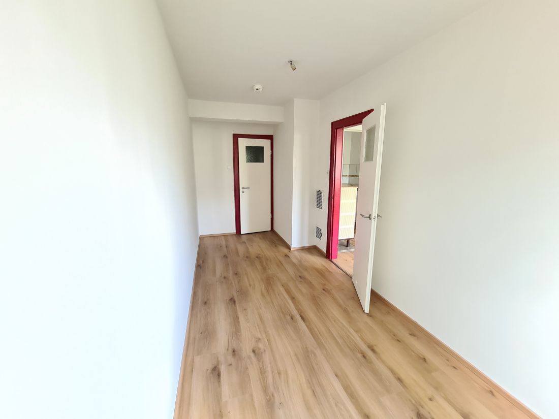 Das Objekt befindet sich im 2. Obergeschoss und ist aufgeteilt in einen Flur, ein Wohnzimmer mit offener Küche, ein Schlafzimmer mit Zugang zum Badezimmer und ein separates WC.