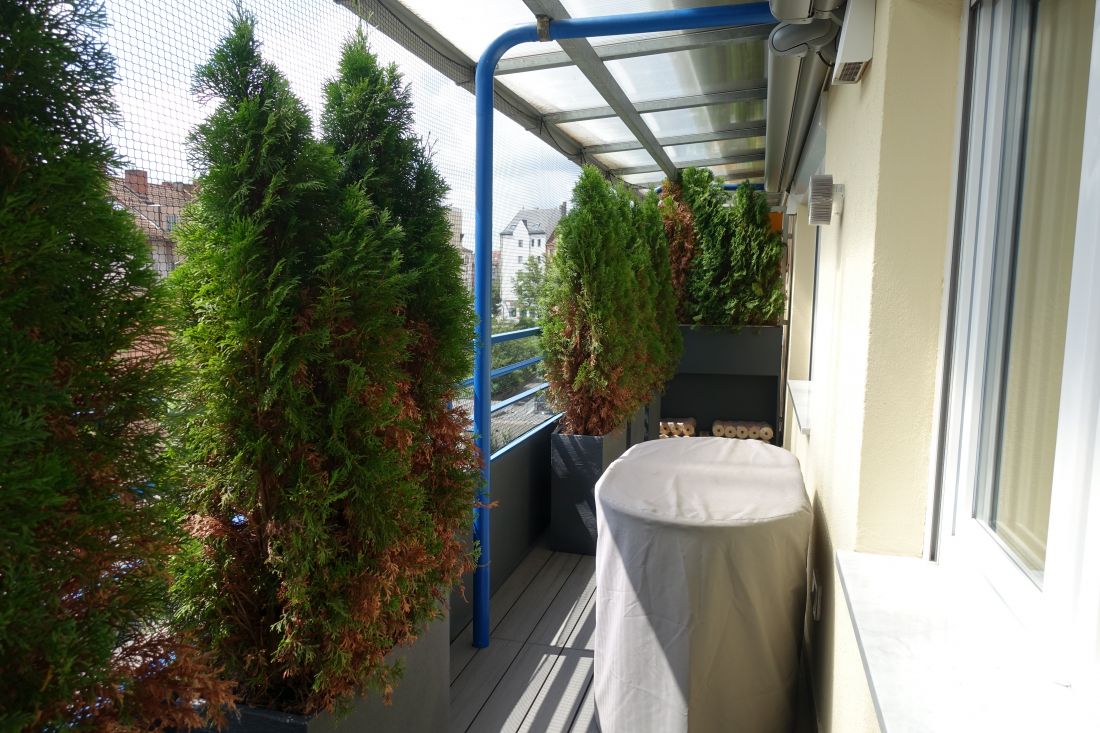 - 2x vollflächige Balkonmarkise elektrisch, mit Regen-/Windsensor