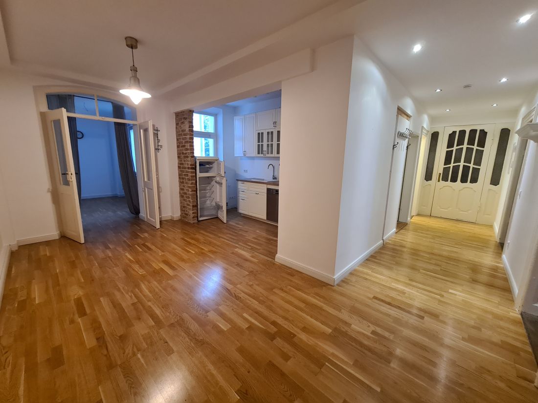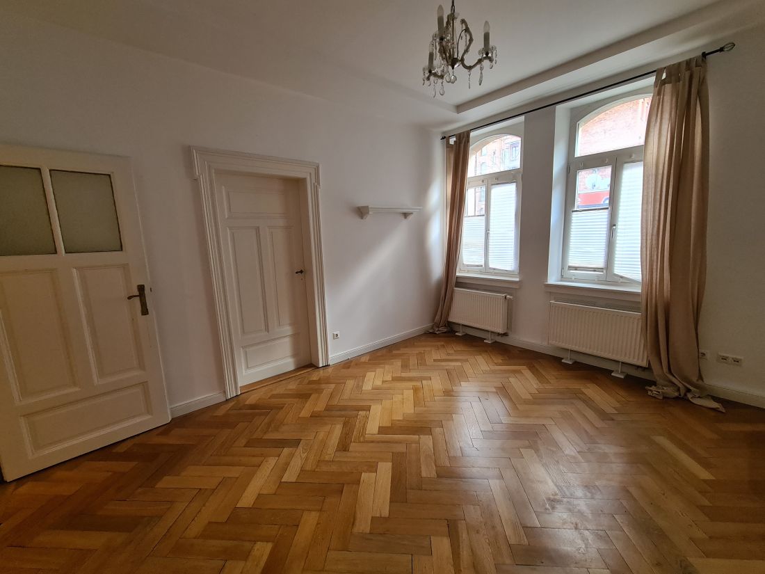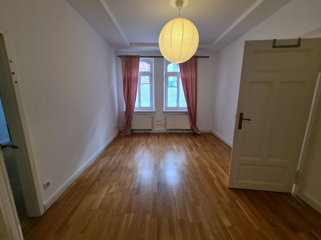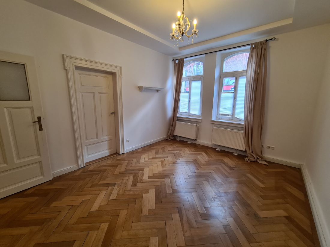 Bei der angebotenen Immobilie handelt es sich um eine 4-Zimmerwohnung im Erdgeschoss eines 2011/2015 sanierten Denkmals.