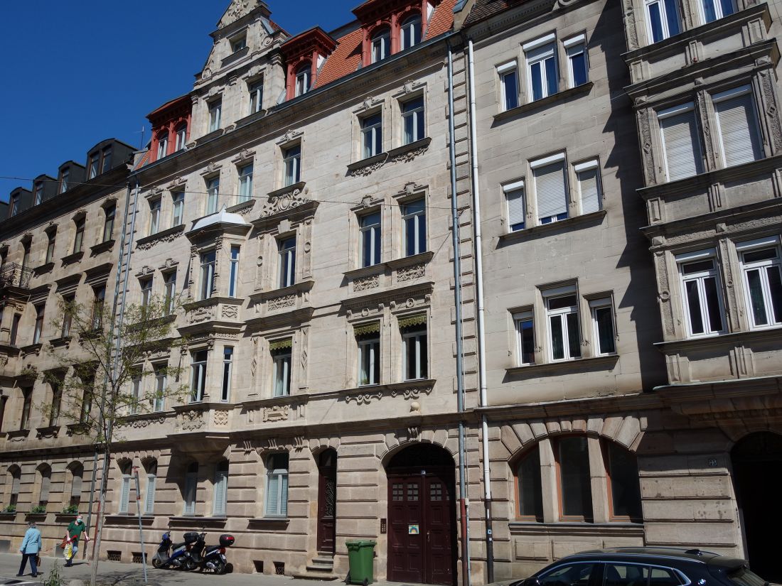 Das Denkmal ist ein viergeschossiger Mansarddachbau mit reich gegliederter Sandsteinfassade, der 1903 im Neu-Nürnberger-Stil von Gustav Hübler errichtet wurde.
