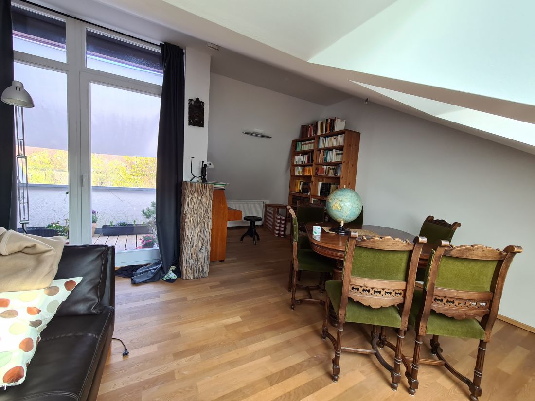 Bei der angebotenen Immobilie handelt es sich um eine sehr gepflegte 2-Zimmer-Maisonettewohnung im Dachgeschoss eines im Jahr 2012 sanierten Denkmals.