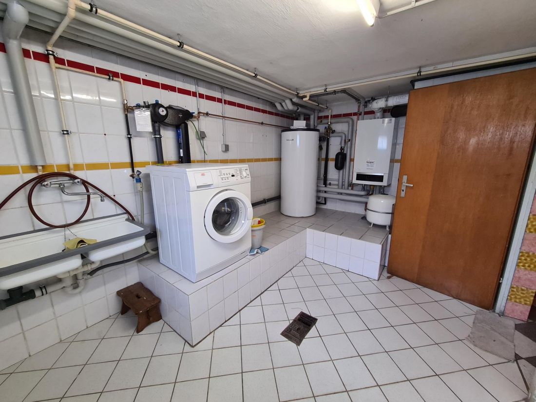 Im Kellergeschoss runden ein ca. 25 m² großer Kellerraum mit Heizkörper und Zugang zum Garten, ein kleiner Abstellraum sowie ein Hauswirtschaftsraum mit einer neuwertigen Gaszentralheizung von Buderus und Anschlüssen für Waschmaschine und Trockner die durchdachte Aufteilung des Objektes ab.