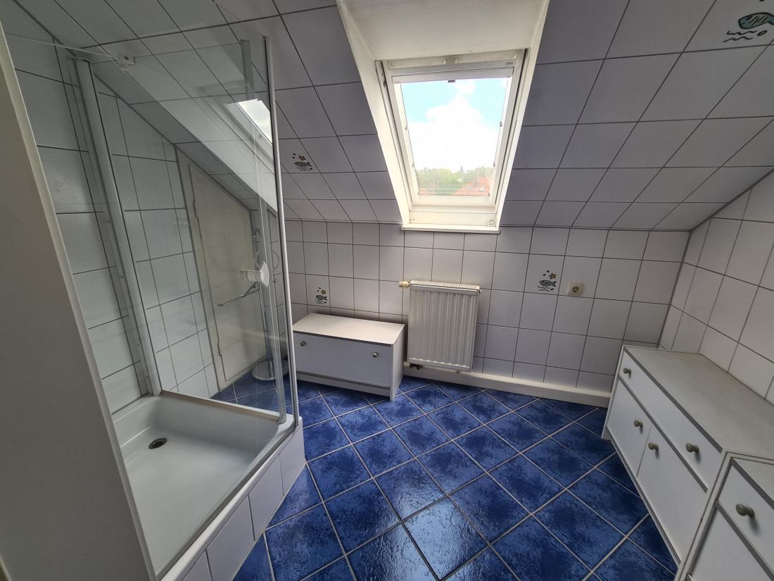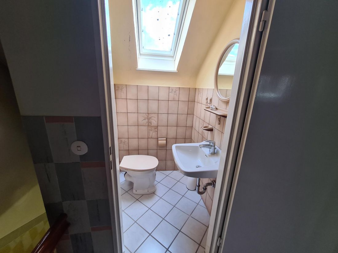 Das Dachgeschoss ist ausgebaut und aufgeteilt in ein großes Zimmer, ein WC und ein Bad mit Dusche.