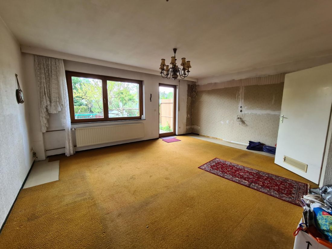 Das ca. 25 m² große Wohnzimmer vermittelt dank optimaler Tageslichtverhältnisse eine angenehme Wohnatmosphäre und ermöglicht den Zugang zu Terrasse und Garten (Südwest-Ausrichtung).