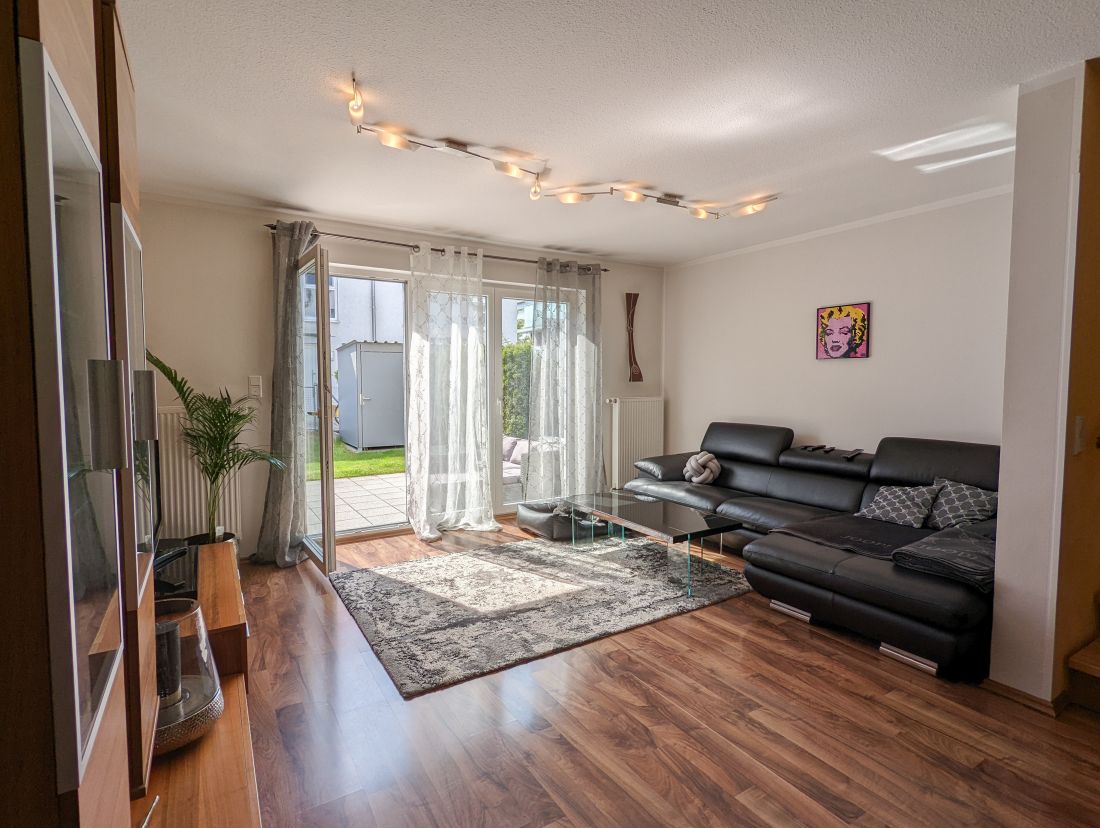 Über das Entrée mit Zugang zu Gäste-WC und Küche betreten Sie den Wohn- und Essbereich, der dank guter Tageslichtverhältnisse eine angenehme Wohnatmosphäre vermittelt und den Zugang zu Terrasse und Garten (jeweils in Südwest-Ausrichtung) ermöglicht.