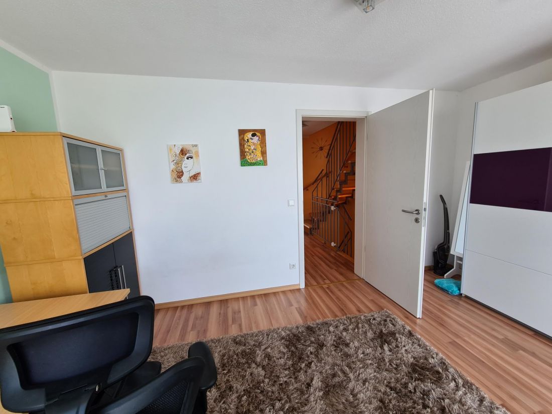 Im 1. Obergeschoss befinden sich neben einem Badezimmer mit Badewanne, WC und Dusche ein Schlaf- und ein Arbeitszimmer.