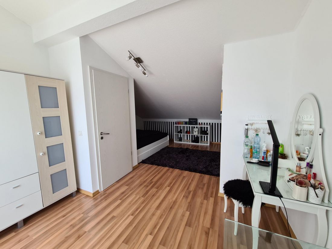 Das Dachgeschoss ist ausgebaut und wird als weiteres Zimmer genutzt. Highlight ist die von hier aus begehbare und nach Südwesten ausgerichtete, großflächig dimensionierte Sonnenterrasse.